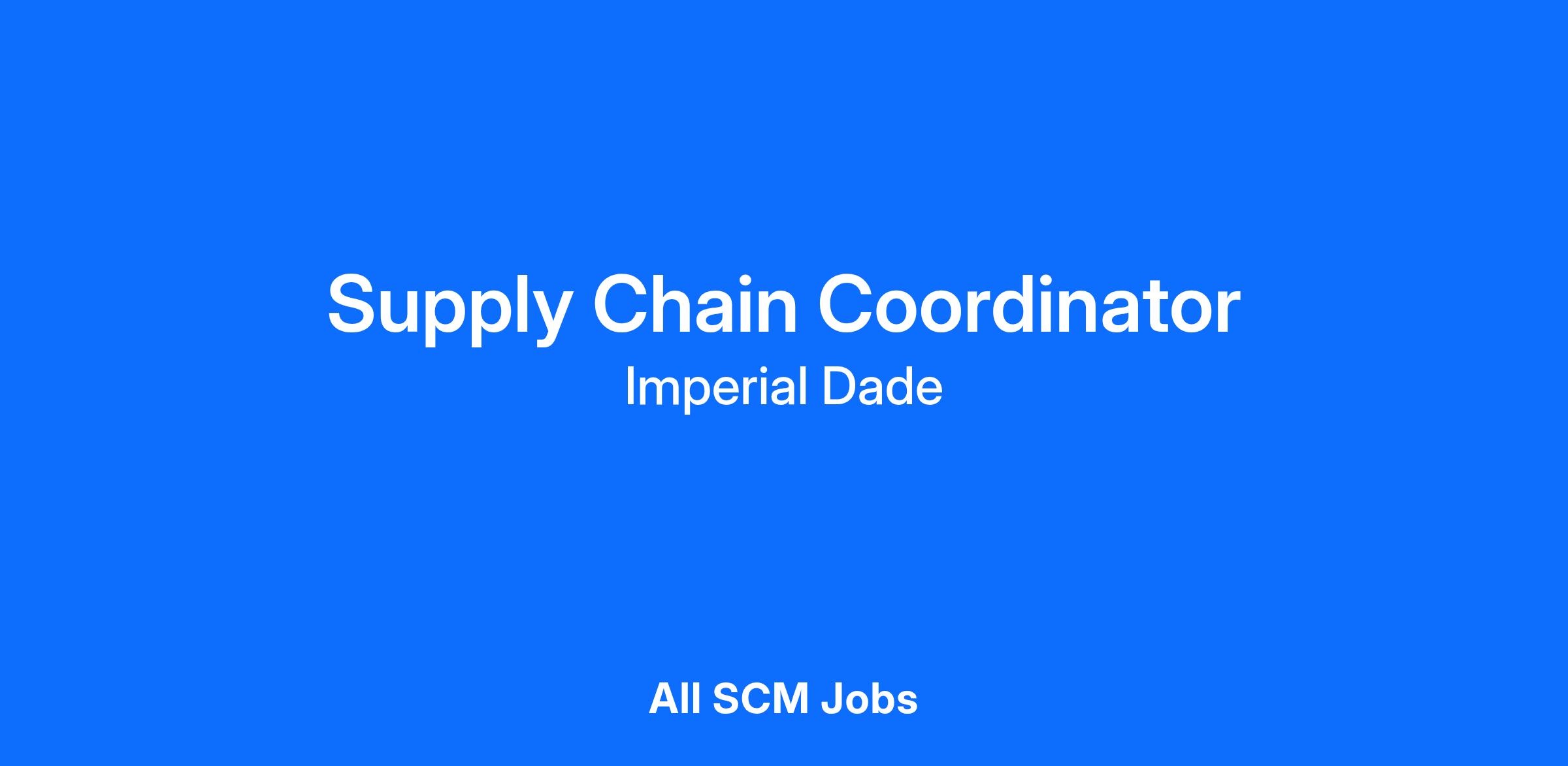 Imperial Dade, a leading North American distributor, has a Supply Chain Coordinator role available in Jersey City, NJ! Join a strong and continuously evolving group, helping to continue to grow our business. If you’re eager for your next opportunity, Imperial Dade is a great place to take that next step.