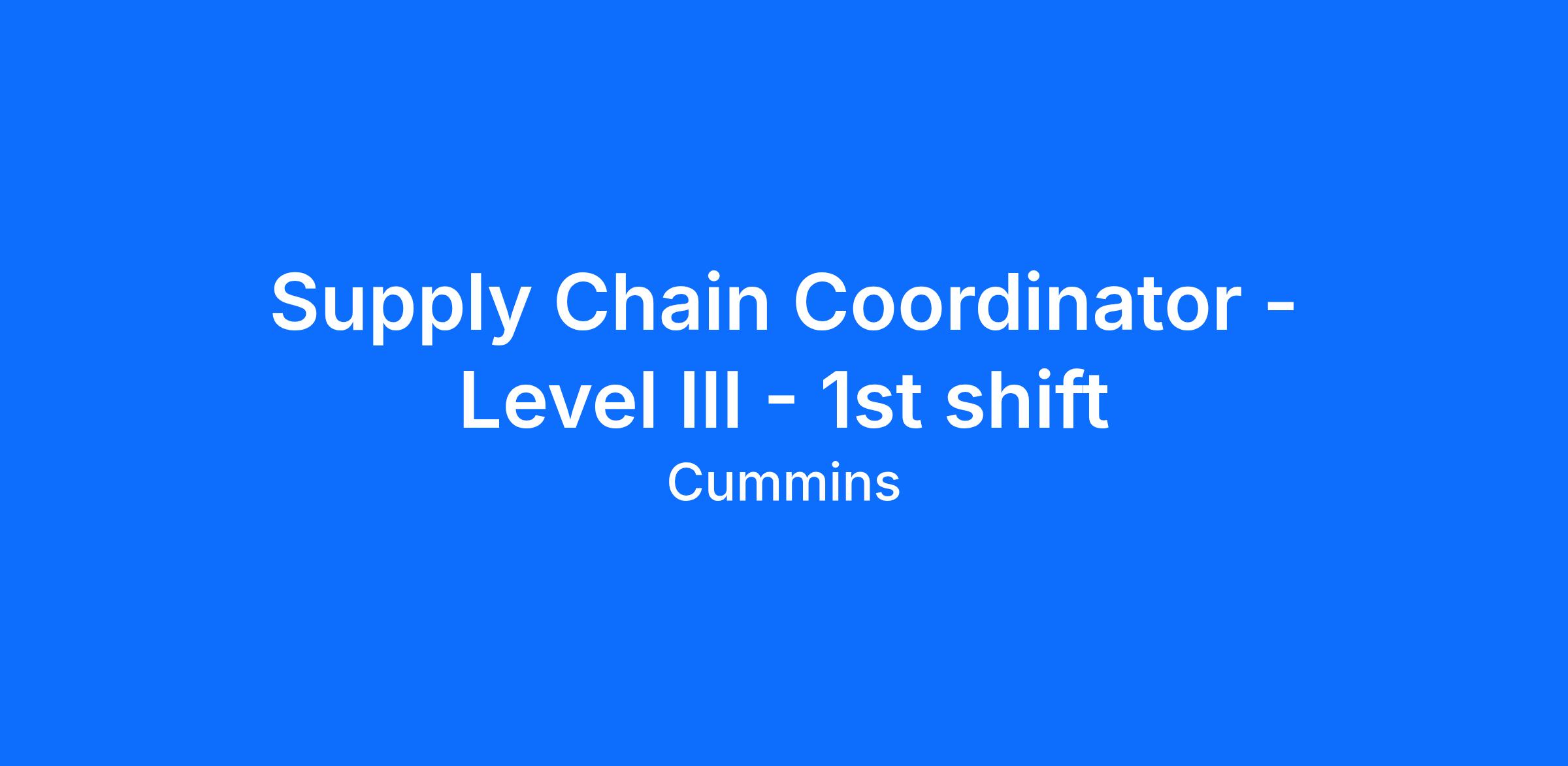 We are looking for a talented Supply Planning Coordinator- Level III to join our team specializing in Supply Chain Planning for our Cummins Inc. facility in Starkville, MS