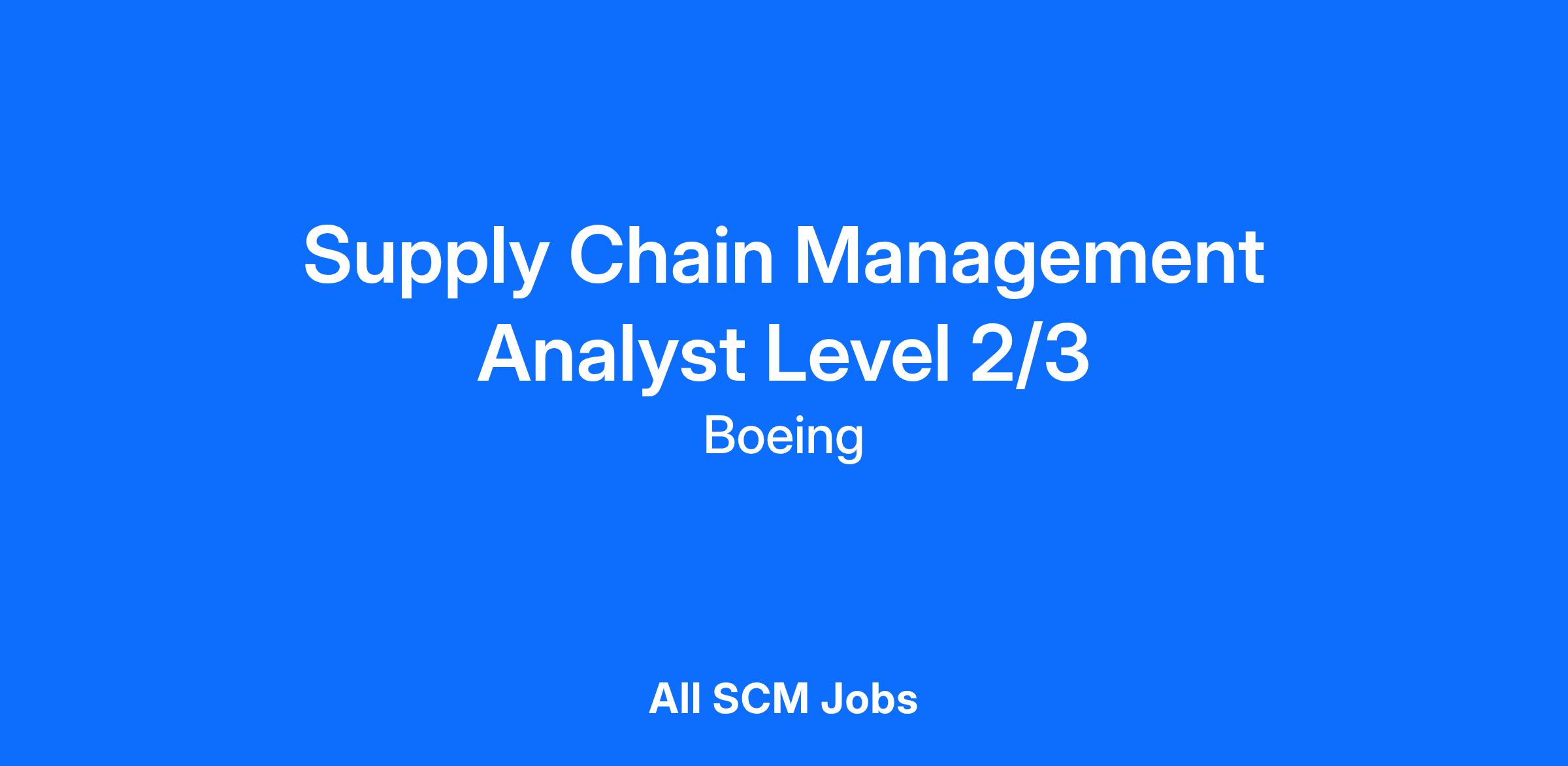 The Boeing CompanyBoeing Commercial Airplanes (BCA) is looking for a Supply Chain Analyst (level 2 or 3) to work on the 777 Supply Chain Factory Health and Analytics team in Everett, WA.