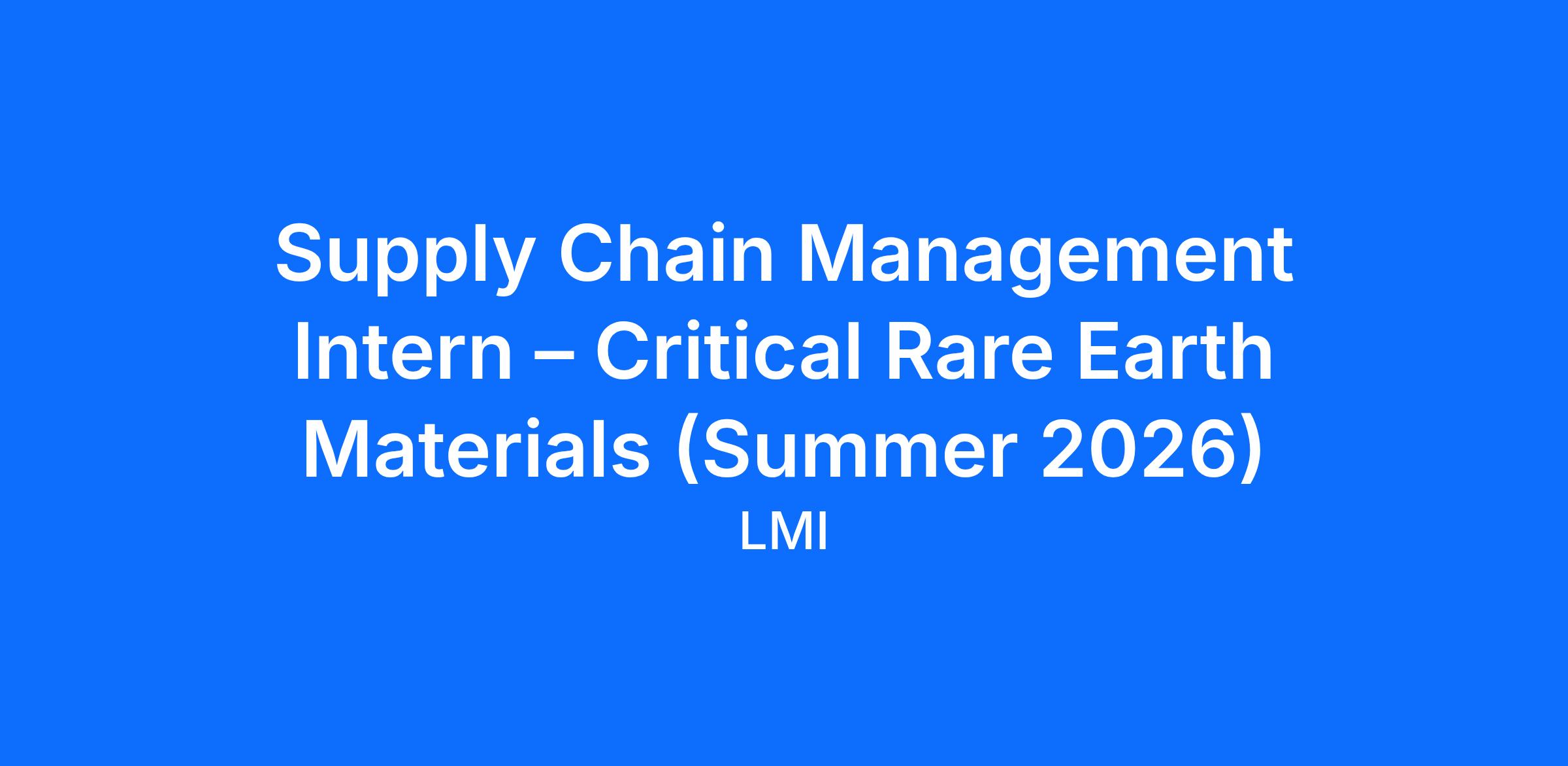 LMI is seeking a Supply Chain Management Intern – Critical Rare Earth Materials to support analysis of supply chains for critical rare earth materials and their use in parts and components. This internship will focus on researching material flows, developing value stream maps, identifying infrastructure required to support recovery and recycling, and assessing whether parts containing rare earth materials can be recycled now or may become recyclable as new technologies mature. The intern will help build practical frameworks to support part screening and recyclability assessments.