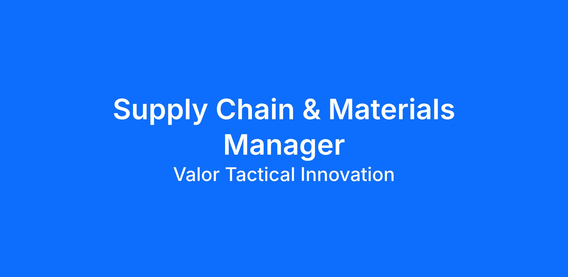 Application Process: We invite you to apply for the Supply Chain & Materials Manager position.