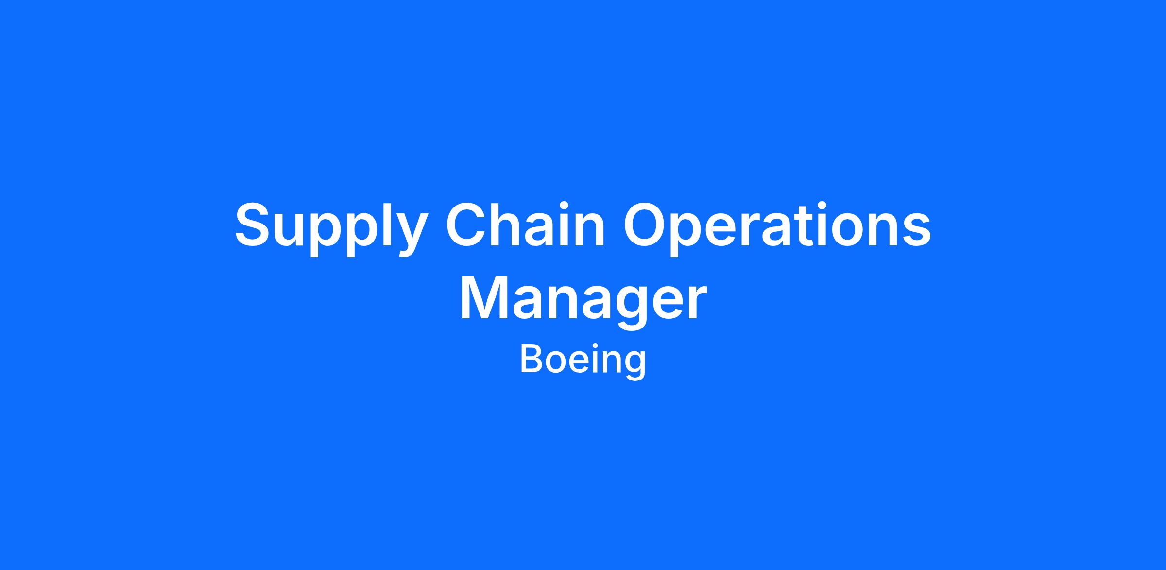 Boeing Canada Operations LtdBoeing Canada Operations Ltd. is seeking a Supply Chain Operations Manager, reporting to the Senior Supply Chain Manager, working out of the Winnipeg, MB office.