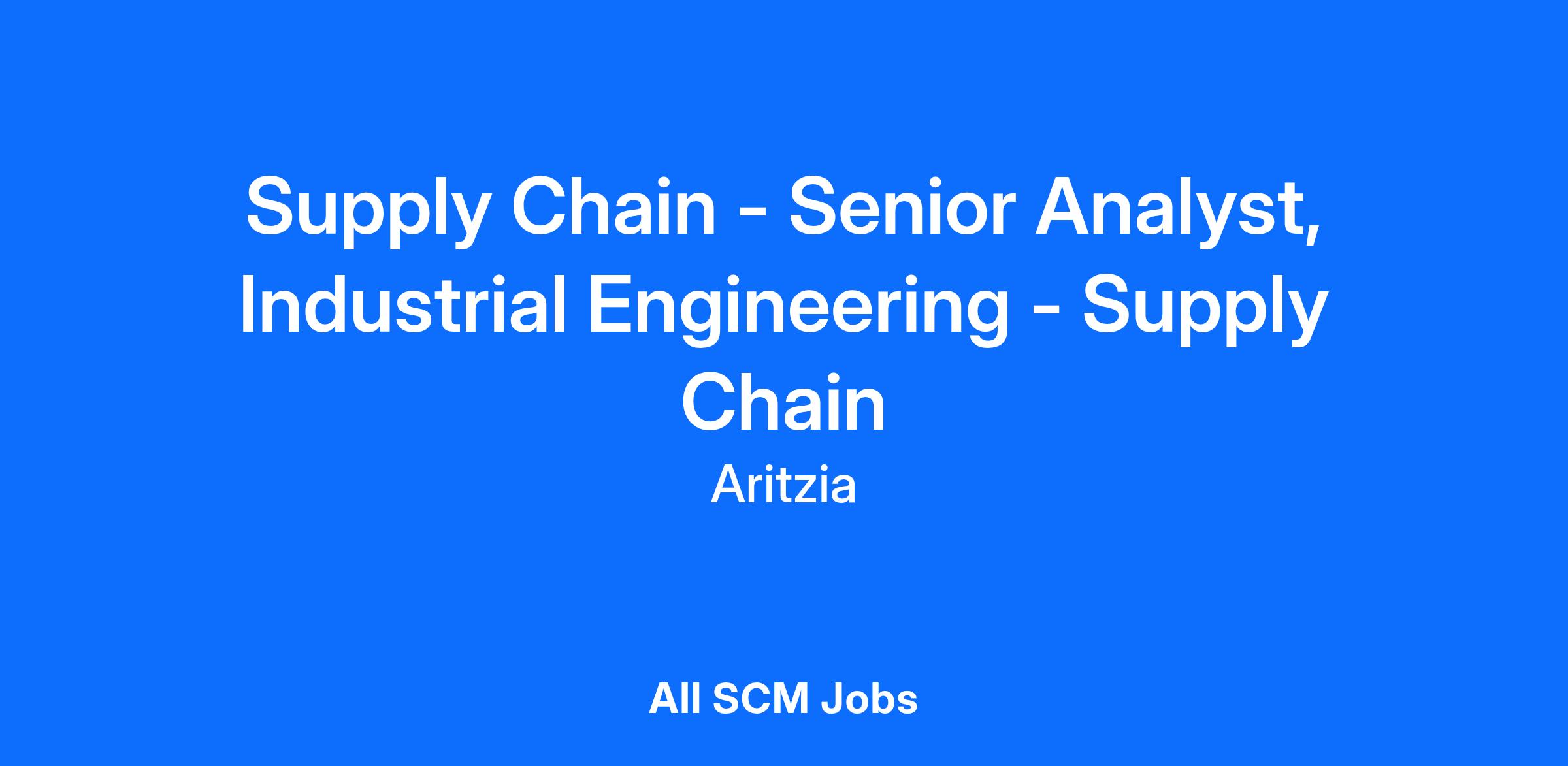 As the Senior Analyst, Industrial Engineering - Supply Chain, you will: