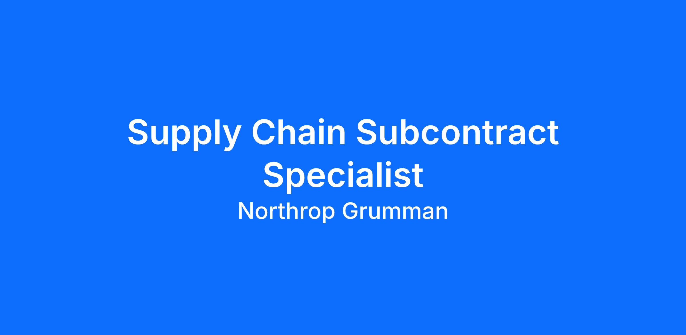 As a Supply Chain Subcontract Specialist for the for Category Management (CM), you join a team dedicated to supporting the warfighter. You will further the success of our programs to help Northrop Grumman leave the boundaries of what's known and solve tomorrow's problems. In this role you will work on sending Request for Quotes (RFQ’s), and negotiating purchase orders (PO), while managing orders to completion and building relationships with our CM suppliers. Be a part of a team that not only fosters open communication of ideas but encourages innovation at every level. This position is located in Linthicum, Maryland and includes a hybrid work environment.