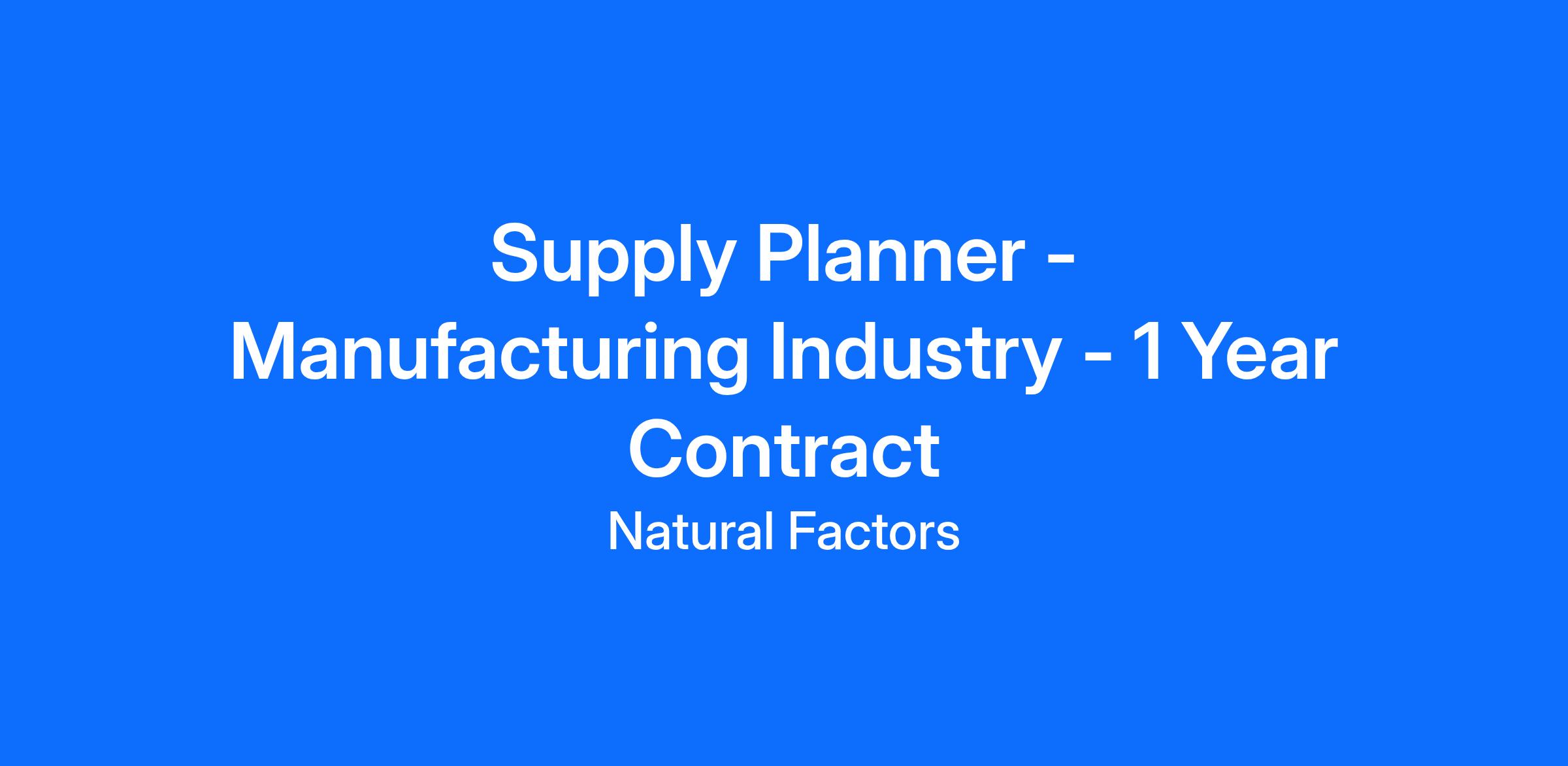 Supply Planner – Manufacturing Industry – 1 Year Contract