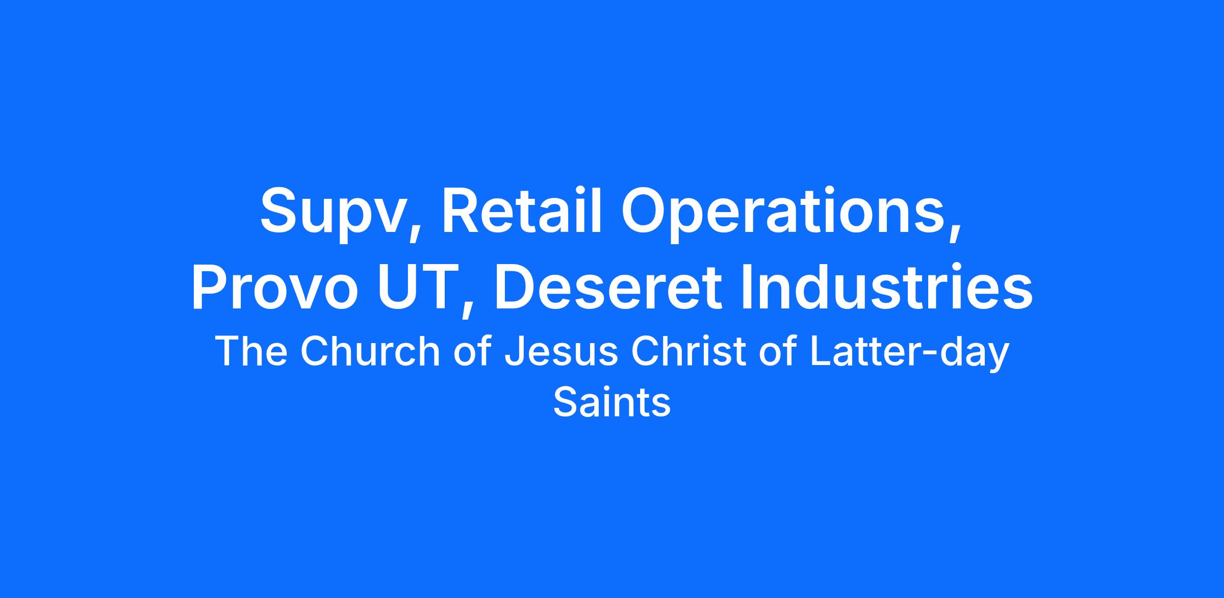 Supv, Retail Operations, Provo UT, Deseret Industries