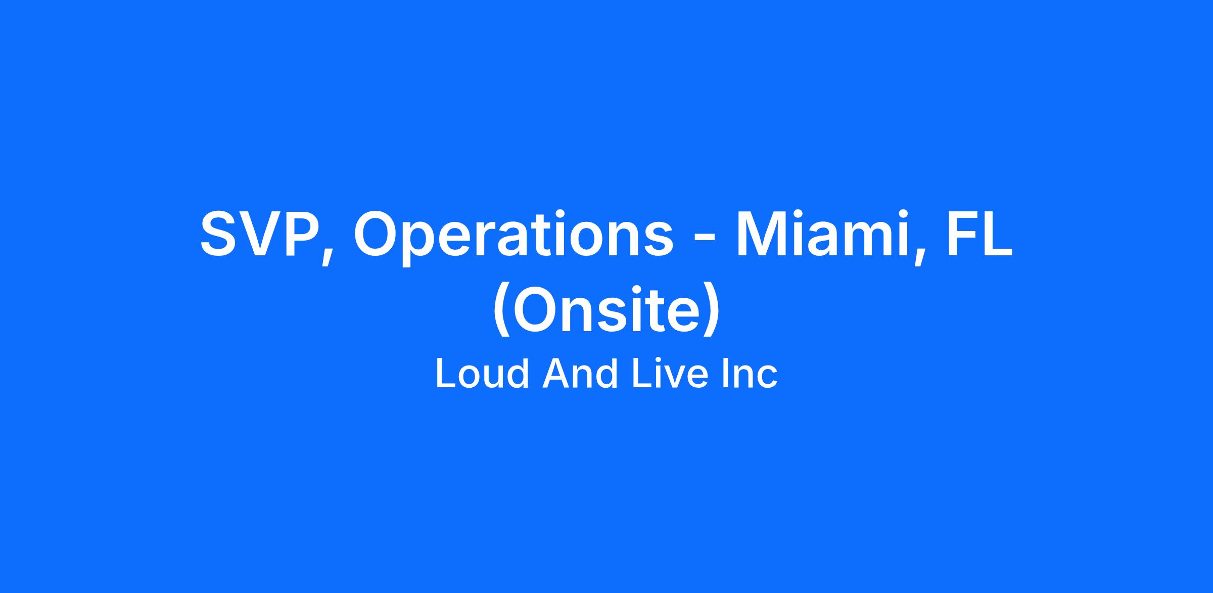 SVP Operations is responsible for building and sustaining the operational foundation that enables Loud And Live’s long-term growth strategy. Key areas of accountability include: