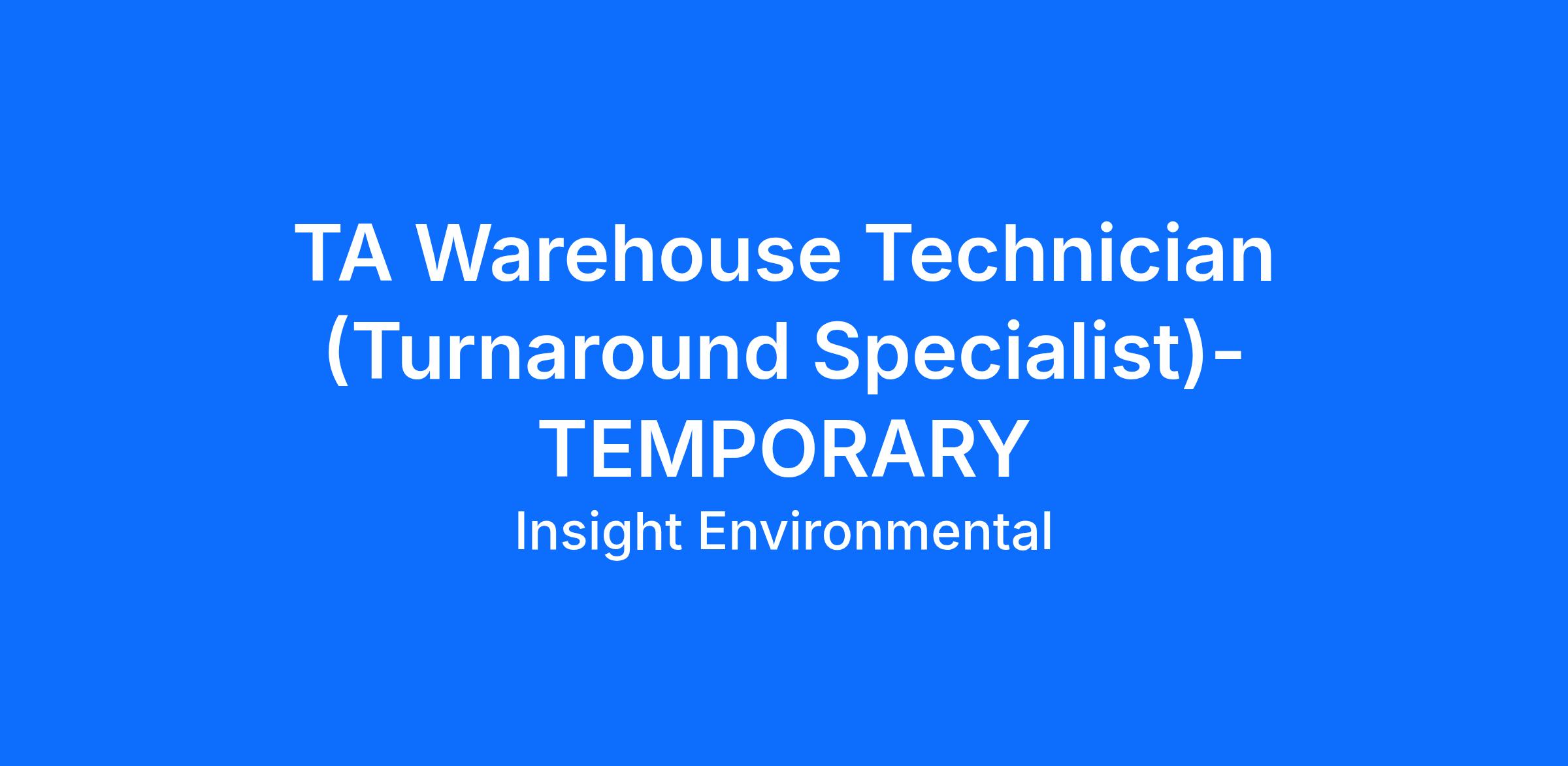 TA Warehouse Technician (Turnaround Specialist) Location: Lima, OH
