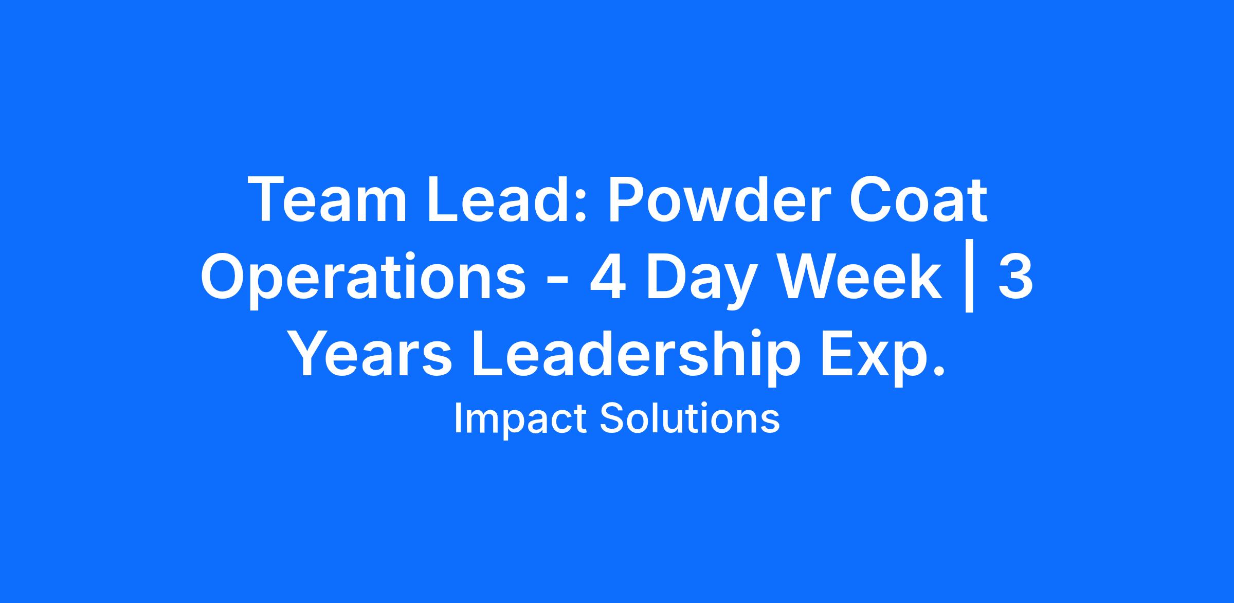 Team Lead: Powder Coat Operations - 4 Day Week | 3 Years Leadership Exp.