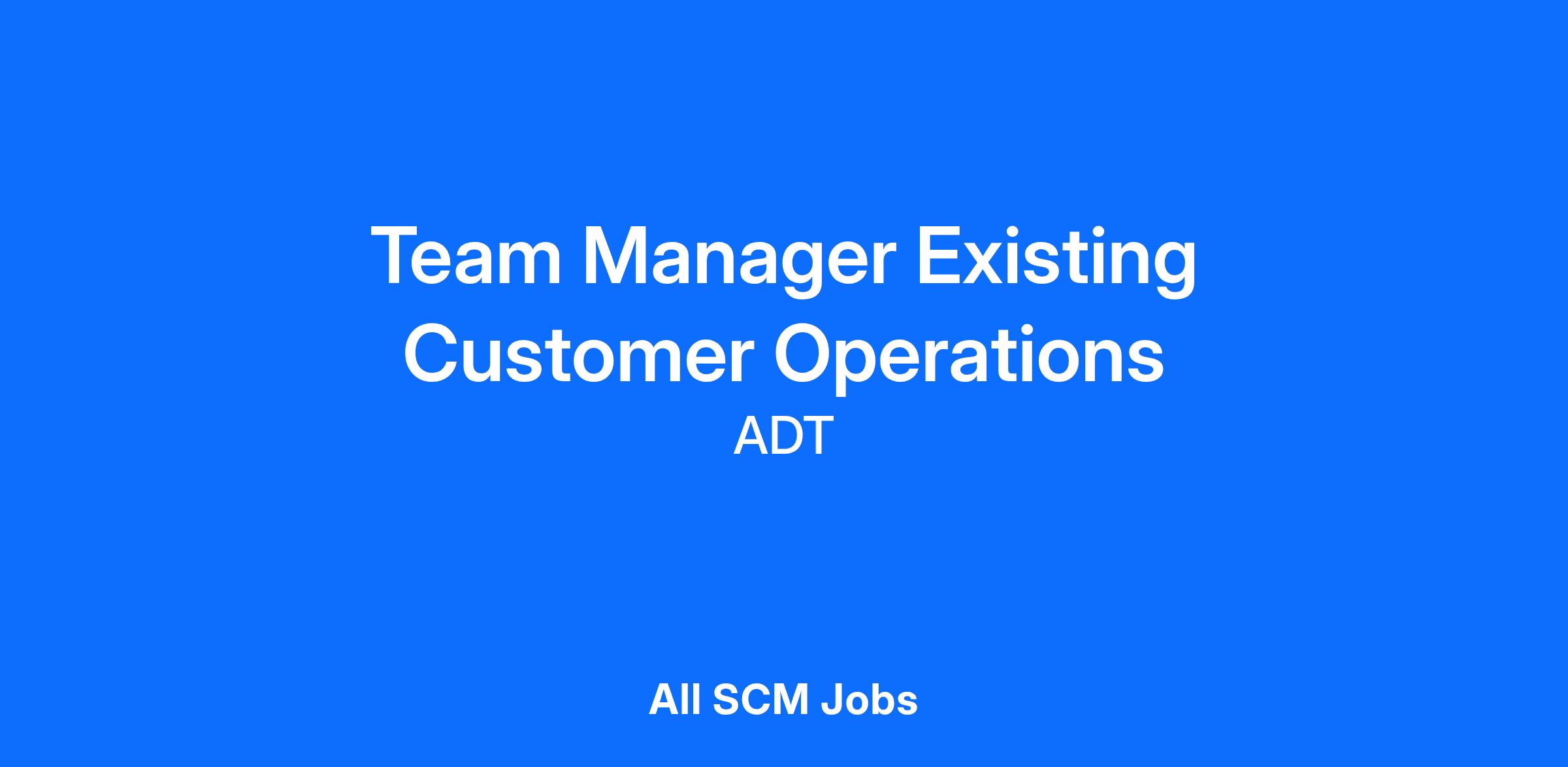 An ADT Team Manager supports the Existing Customer channel will be responsible for the assignment and coordination of people and materials necessary for the prompt and complete installation and service of all jobs within an assigned territory.