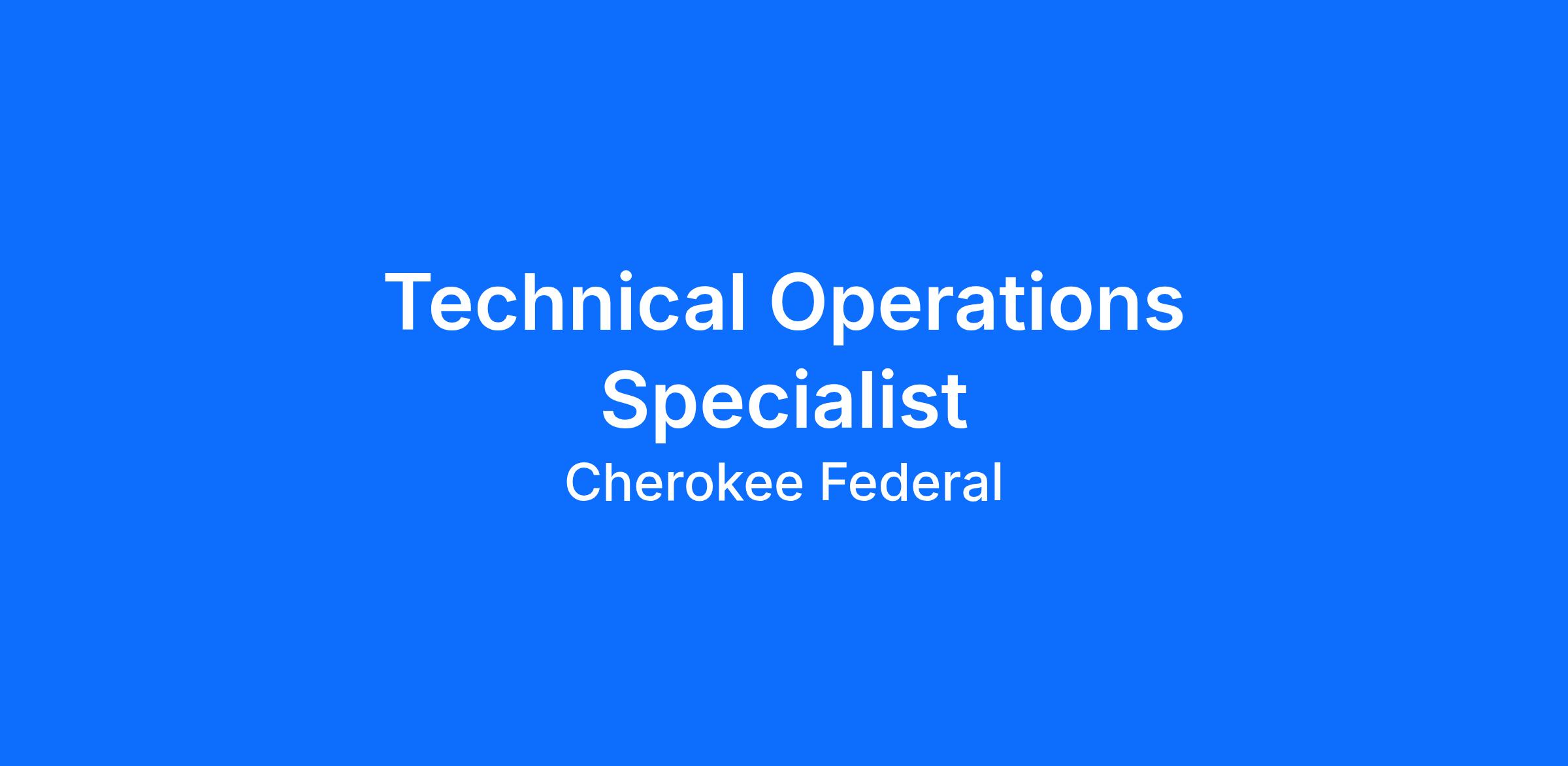 Cherokee Preting is seeking a Technical Operations Specialist to support our government client.