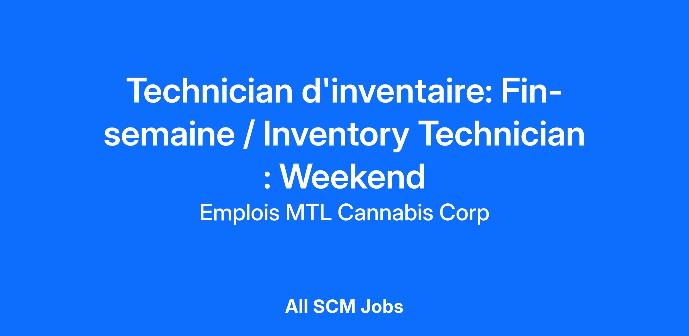 We are looking for an Inventory Technician: Weekend Shift to join our team. As the Inventory technician, you will need to be able to move have pallets/boxes, be good with numbers, be able to multitask and be willing to change tasks on the fly. As well as be comfortable with operating under Health Canada Regulations.