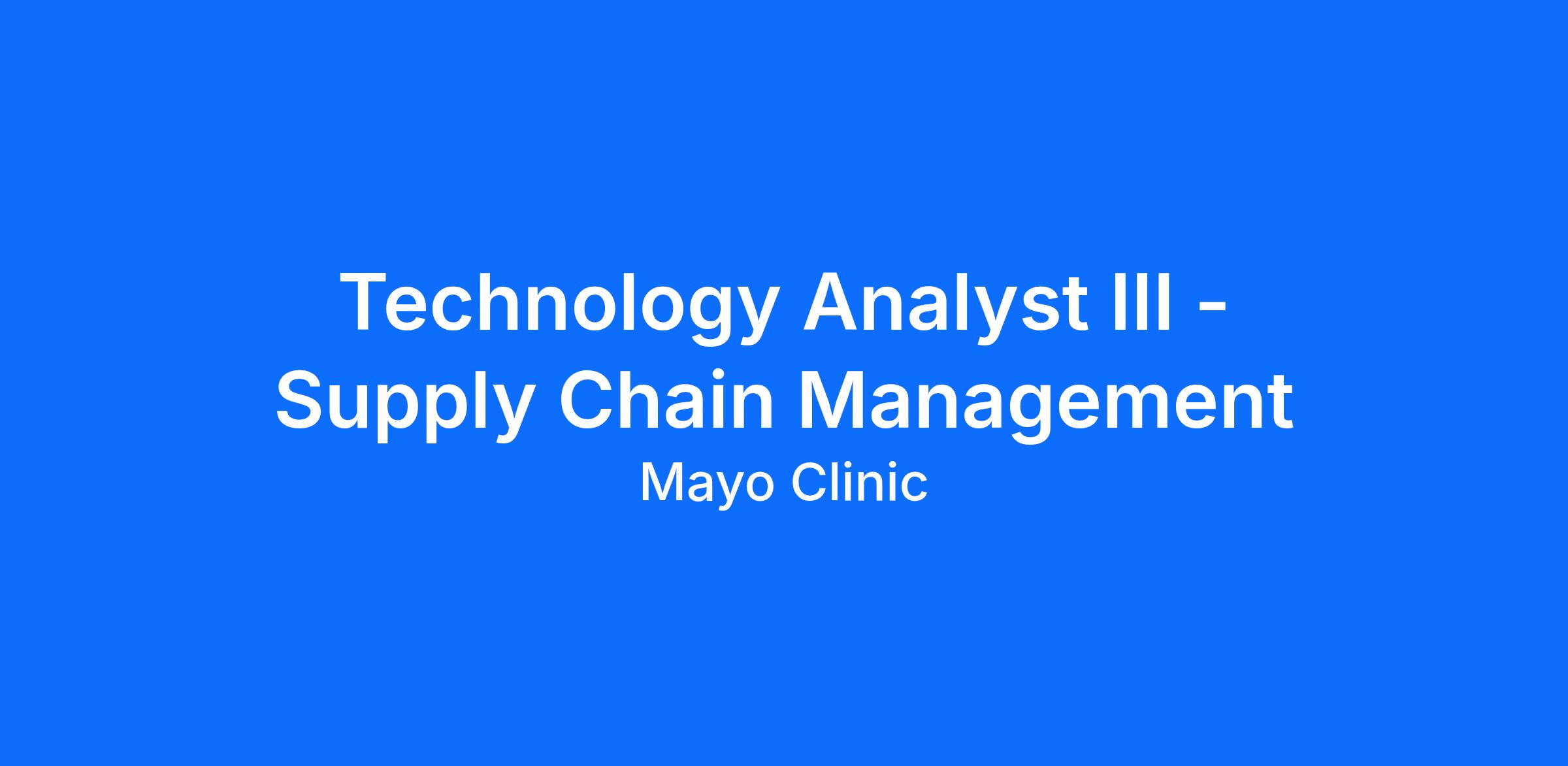 The Technology Analyst 3 role is responsible for evaluating business processes, making recommendations, developing innovative solutions, and improving processes using digital standards and technology. Analyst 3’s will make significant contributions to supporting cost containment and supply chain optimization for the Practice, orchestrating supply management system initiatives, process automation and bringing innovation to Mayo Clinic. Additionally, Analysts will train, advise and mentor SCM staff to fully enable an end-to-end digital supply chain. The role is expected to have a strong background in supply chain, finance, engineering or healthcare, with expertise in digital technology, including modern Analytics, Process Automation, Application Programming Interfaces and Product Management. Analysts need to be skilled in process improvement, innovation, project management, and application support and/or configuration experience with SCM or Finance technology, ERP/EHR/large integrated system, and/or data warehouses. Analysts must exhibit diplomacy, tact, initiative and organizational skills, as well as possess ability to inspire trust and confidence, communicate effectively with internal and external audiences and demonstrate ability to maintain outstanding customer relations. Requires individual who is self-directed, can effectively multi-task, and handles ambiguity well. Role responsibilities include being a member or leader of the applicable systems leadership teams (e.g. project teams, coordination, and/or Supply Chain and Accounting Technology Review (SCATR)) to sustain long-term goals through consultation, process leadership and digital transformation. Supply Chain Management (SCM) Technology Analysts must stay abreast of current industry trends and establish new methodologies for data driven processes and digital enablement. Additionally, Analysts on the team will be responsible for maintaining the project portfolio, advising on strategic initiatives and tracking the value. May be asked to participate in industry advisory and/or user groups. Must be highly articulate in both oral and written communications, including presentations with the ability to logically translate and disseminate technology insights to non-technical stakeholders.