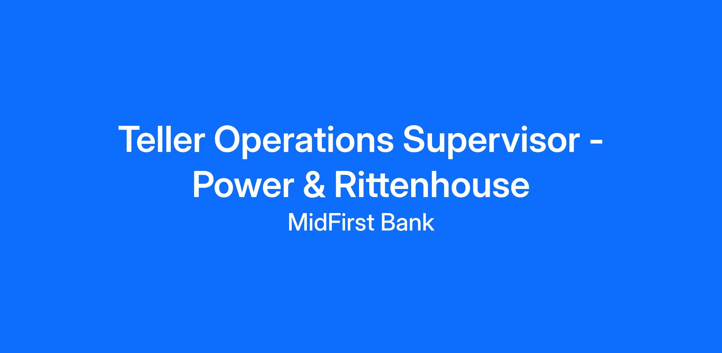 The Teller Operations Supervisor is responsible for providing leadership to the Tellers in the banking center by modeling the highest level of customer service while processing transactions and offering products and services to potential and existing customers.