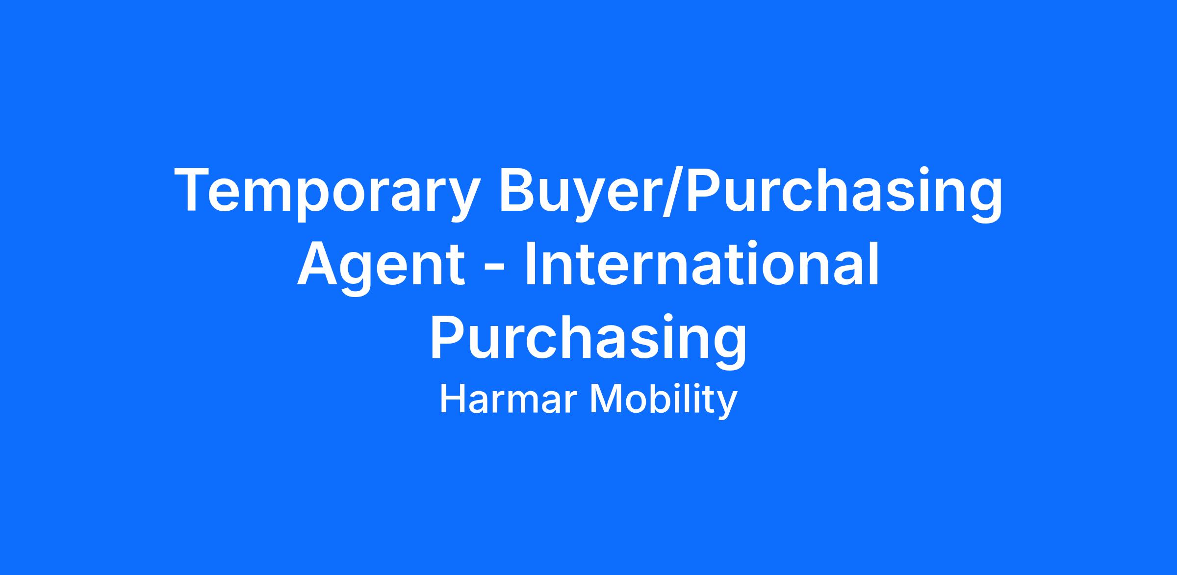 2-3 months assignment. The Temporary Purchasing Agent is responsible for being the analyzer, negotiator, and dealmaker for component parts that Harmar needs to build its products. The person in this position will do the following tasks: