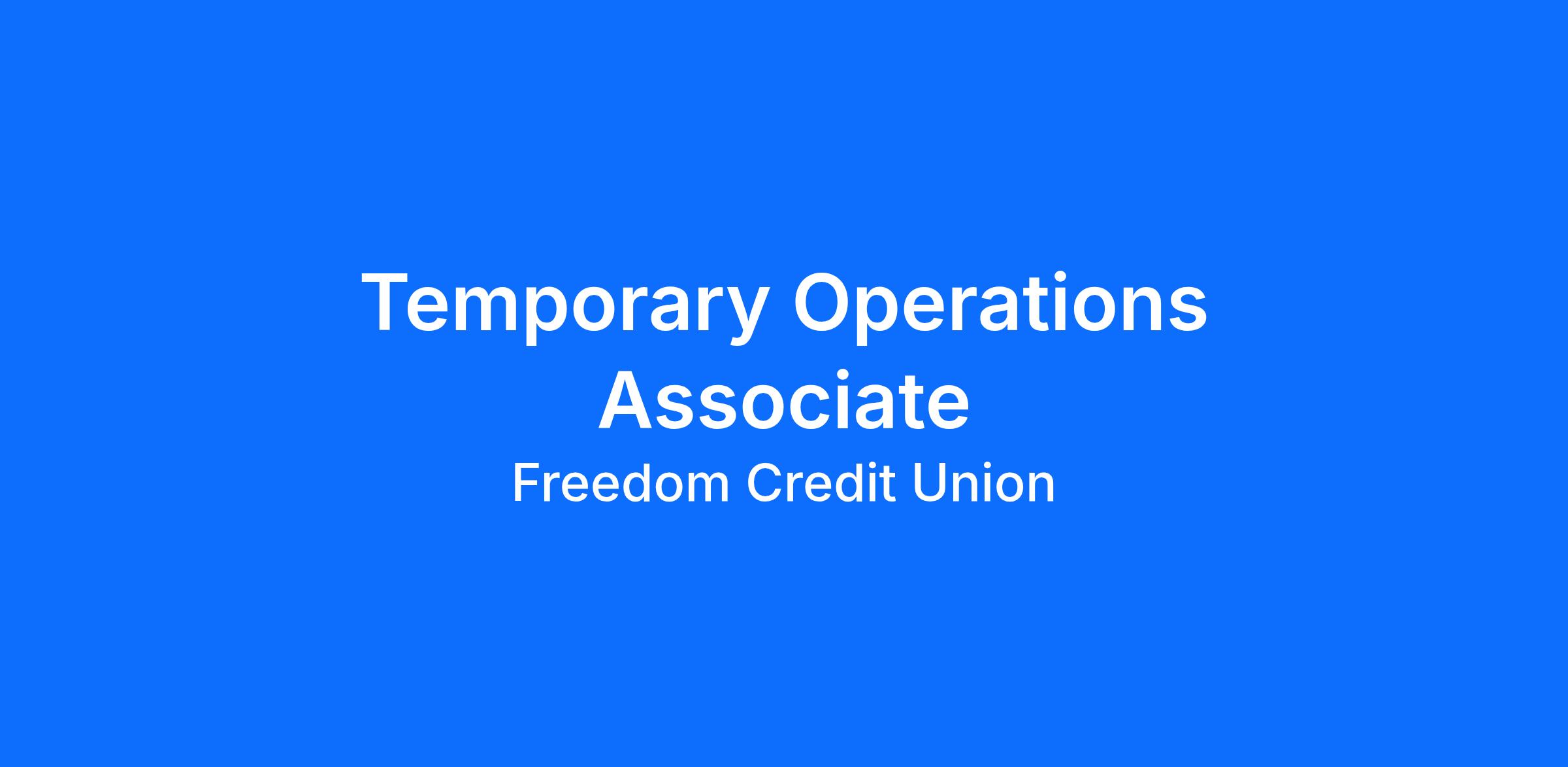 The Temporary Operations Associate will focus on transaction processing, account support, and operational accuracy. It helps maintain Freedom Credit Union’s internal workflow so branches, call centers, and our members have an exceptional experience.