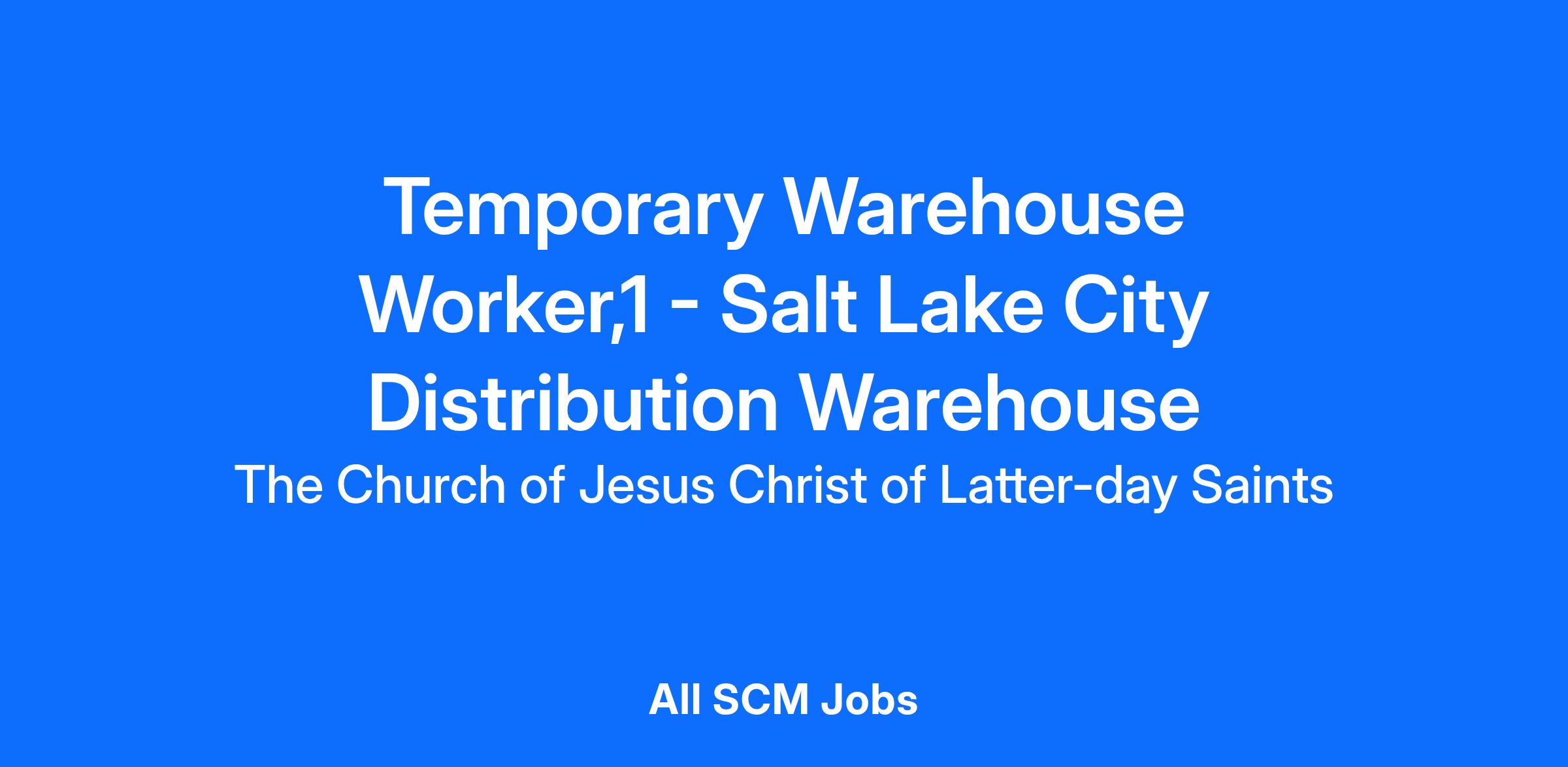 DescriptionThis position will help either Order Processing or Shipping operations of the warehouse supplying gospel teachings, resources, or services accessible to all in a simple and affordable way, supporting the mission of the Church. The incumbent performs daily receiving, warehousing, selecting, and shipping tasks. Incumbents replenish, audit, inventory, document, ship materials domestically and internationally, and/or deliver commodities. The incumbent uses heavy material handling equipment such as forklifts, electric pallet jacks, automatic strapping equipment, and so on. Incumbents may work directly with customers, ecclesiastical leaders, and others to resolve order delays and make order corrections. They may drive cars and trucks to transport materials/ commodities and may take physical inventories. This position provides entry or training level warehousing experience in which the incumbent performs various receiving, stores, and/or shipping functions under close supervision.