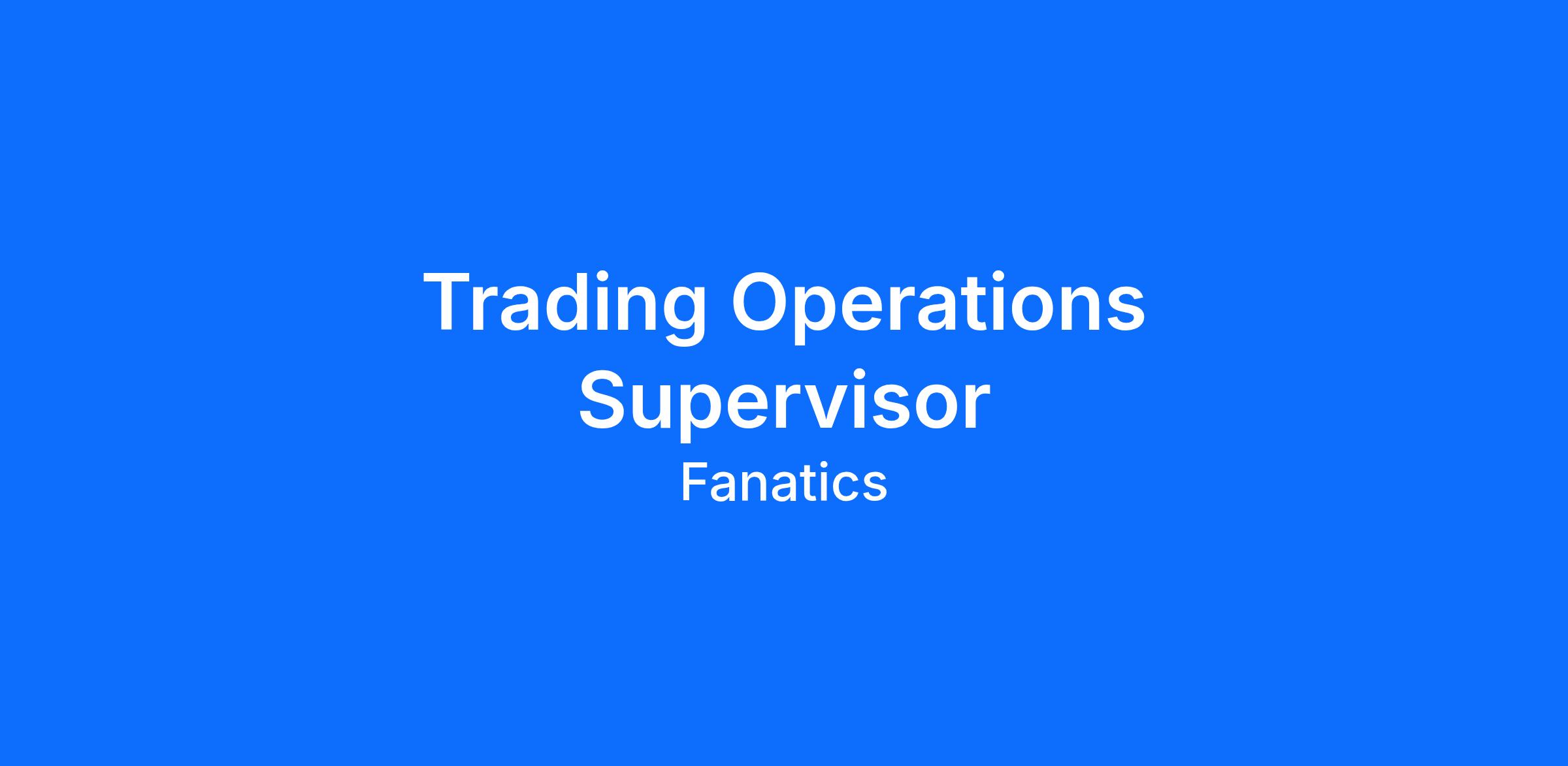 DescriptionThe Trading Operations Supervisor role plays a critical role in optimizing our day-to-day operations, ensuring that all processes run smoothly and efficiently. This role is responsible for overseeing operational workflows, driving strategic improvements, and ensuring world-class execution across all trading operations. The ideal candidate will combine a deep understanding of operational excellence with leadership capability, ensuring that our processes, people, and products deliver a first-class Betting Experience to our customers.