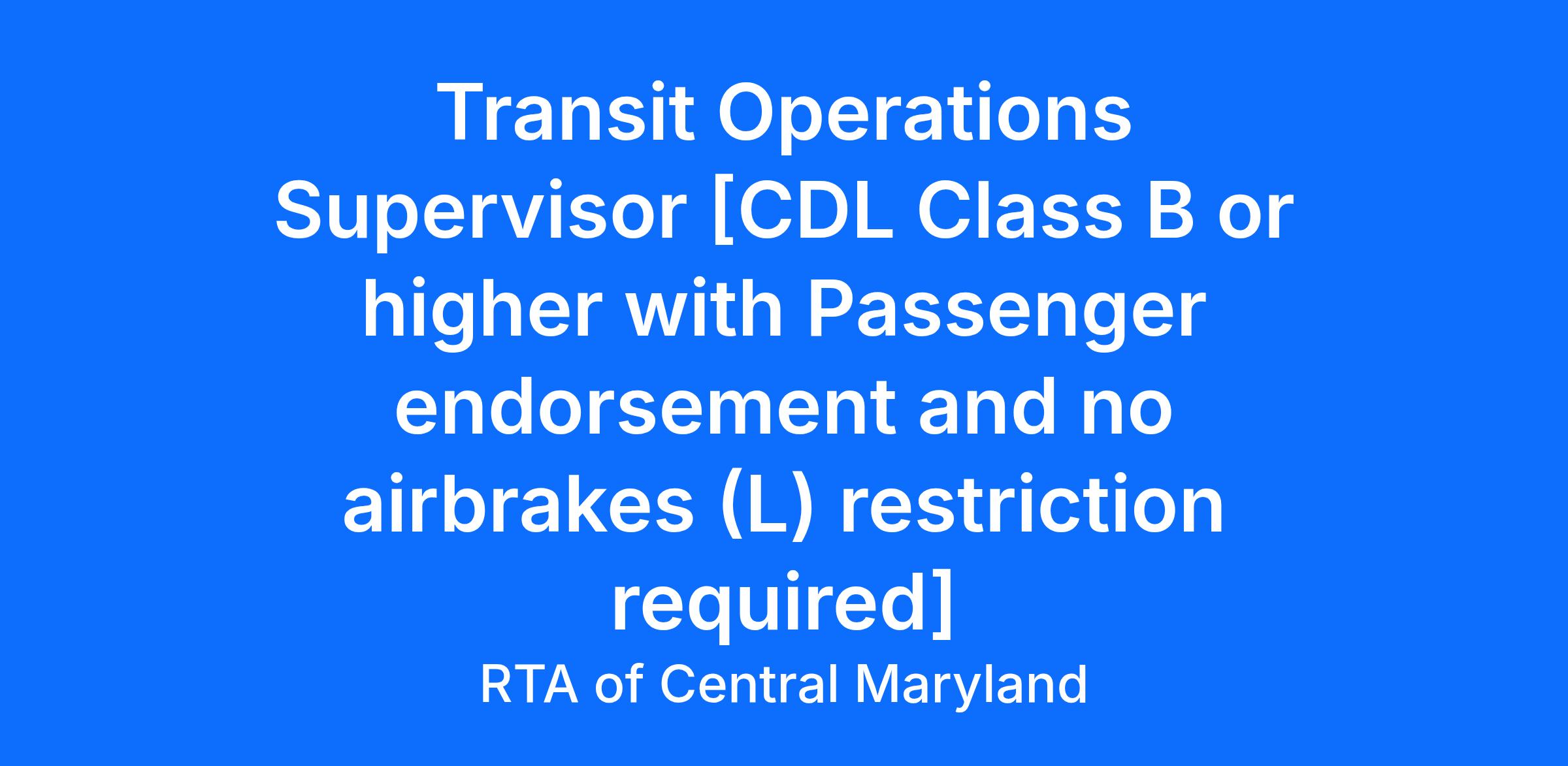 - Must maintain Commercial Driver's License (CDL) Class B or higher with Passenger (P) endorsement and No Airbrakes (L) Restriction.