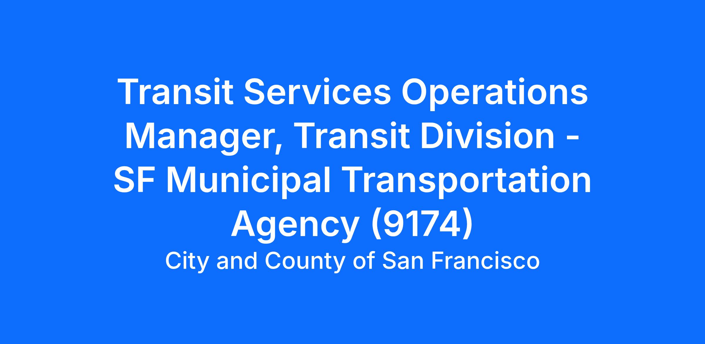 The San Francisco Municipal Transportation Agency (SFMTA) has determined that Class 9174 Manager IV is a “safety-sensitive” position, under regulations issued by the Federal Transit Administration (49 CFR Part 655). Federal law requires that all transit employees who perform safety-sensitive functions be subject to random, post-accident, reasonable suspicion, return-to-duty and follow-up drug and alcohol testing. All applicants for Safety-Sensitive positions shall undergo urine drug testing prior to employment and within 90 days prior to performing Safety-Sensitive functions for the first time. Receipt by the SFMTA of a negative test result is required prior to the employee being placed on the payroll. The SFMTA will not consider hiring any person who tested positive, adulterated, substituted or refused to submit to testing for a minimum of two years following the positive test.