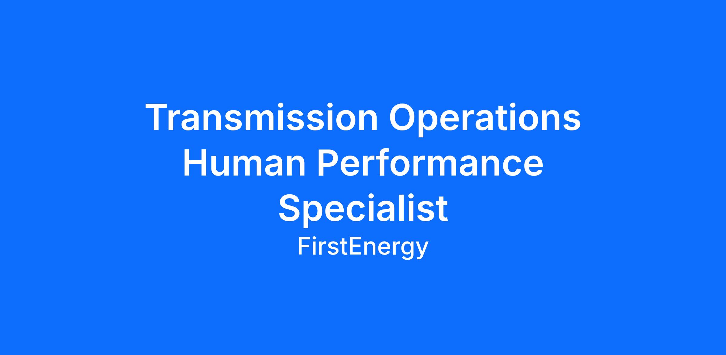 The Transmission Specialist (Human Performance) supports Transmission Operations by administering, coordinating, and continuously improving the Human Performance (HP) program across FE East, FE South, FE West, and Outage Coordination. While the formal job title is Transmission Specialist, this role functions as the Human Performance subject matter expert for Transmission Operations, supporting Operational Excellence, error prevention, learning from events, and continuous improvement initiatives.