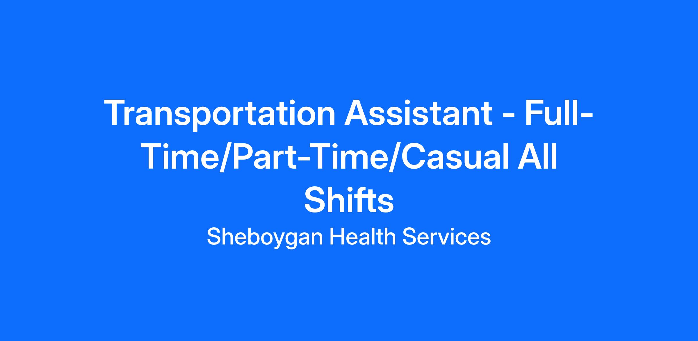 <span></span></p><p style="text-align: center; "><strong>Now Hiring: Transportation Assistant - Full-Time</strong></p><p style="text-align: center; "><strong>Salary: up to $20/hr. </strong></p><p style="text-align: center;"><strong>Join Our Team!</strong></p><p style="text-align: center; ">Are you ready for an exciting opportunity in transportation? </p><p style="text-align: center; ">We're seeking a dedicated Transportation Assistant to provide essential non-emergency medical transportation to residents.</p><p style="text-align: center; ">Ready to make a difference in people's lives? <em>Apply Today</em><span> and embark on a fulfilling career in transportation!</span><span><p style="text-align: left; "> #INDMISC<br/></p></span></p><br/><p></p>