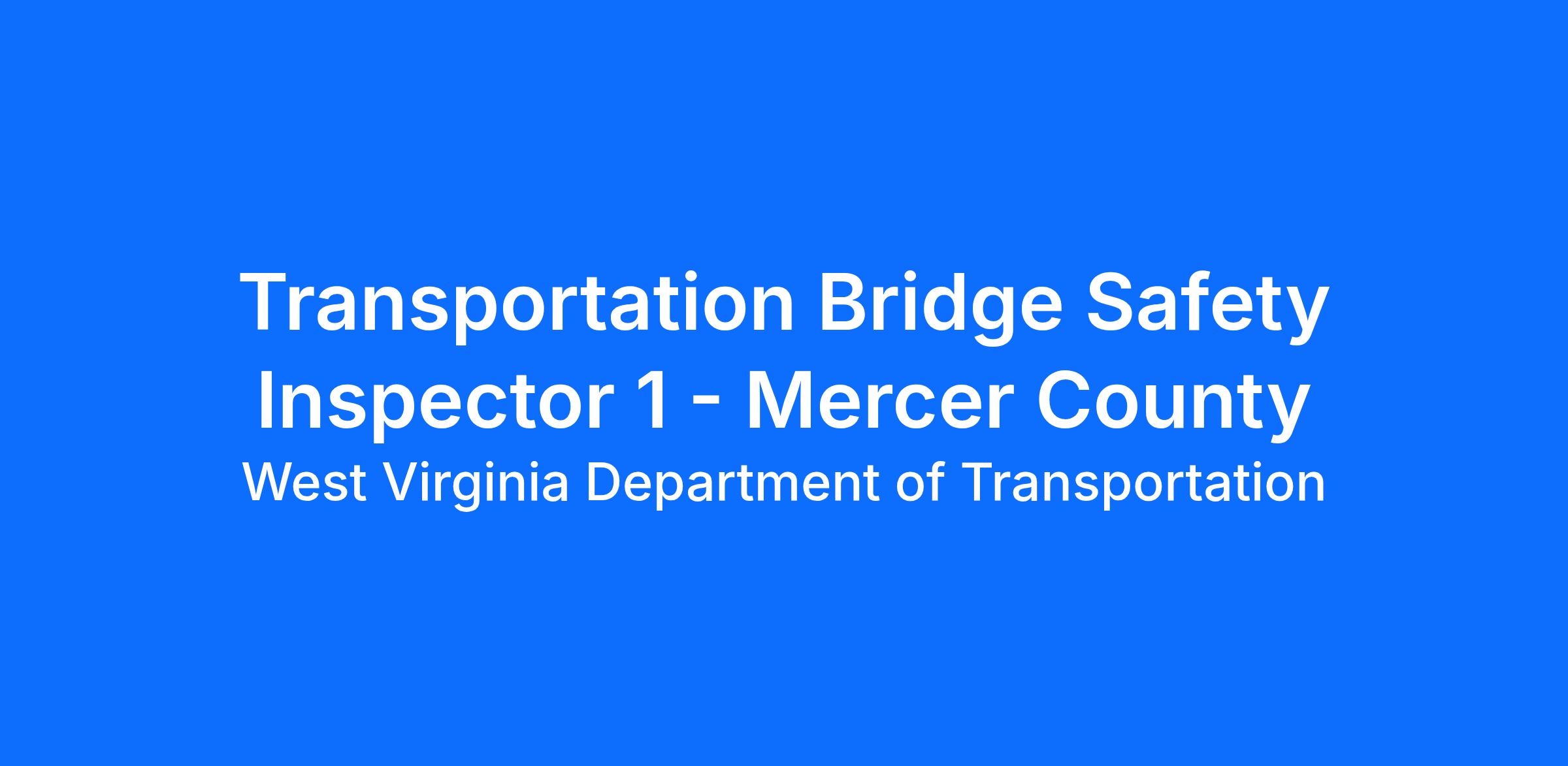 The Transportation Bridge Safety Inspector 1 will report to the District 10 Bridge Department located at the District Headquarters in Mercer County. The employee performs entry level bridge safety inspection work as a member of a highway bridge safety inspection team. Performs strenuous manual labor in rigging scaffolds and ladders to access bridge structures. Acquires and applies the knowledge and abilities to perform bridge safety inspection work. Assists higher level inspectors in bridge safety inspections. Documents findings as part of an evaluation program to determine structural integrity and safety of state highway bridges. The work requires strenuous physical labor. Hazardous working conditions involve climbing on the superstructure and substructure of bridges. The work may involve exposure to severe weather conditions. Performs related work as required.
