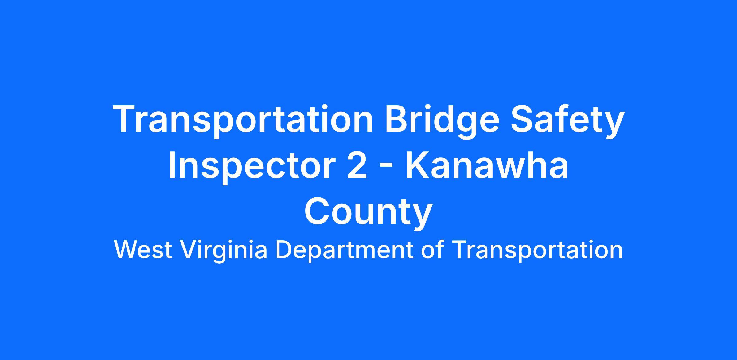 The Transportation Bridge Safety Inspector 2 (TBSAIN2) will report to the Operations Division in Kanawha County. This position is the primary assistant to the Bridge Safety Inspection Crew and the Bridge Safety Inspector 3 or (TBSAIN3) or Transportation Bridge Safety Inspector (TBSAIN4). This is a mid-level position intended to advance through technical classes and hands on training to reach higher levels of bridge inspection responsibility. The selected employee in this position also develops methods and techniques in the details of a thorough and complete inspection. Additionally, the incumbent prepares for and will take an 8 hour West Virginia State Certification examination that consists of written and hands-on components. This test must be successfully passed with a score of 70% or better to advance in the bridge safety inspector classification series. The selected employee must have successfully completed the Comprehensive 2-week NHI course for In-Section Bridge Inspection. This position assists in field inspection and in preparing reports. Performs related work as required.