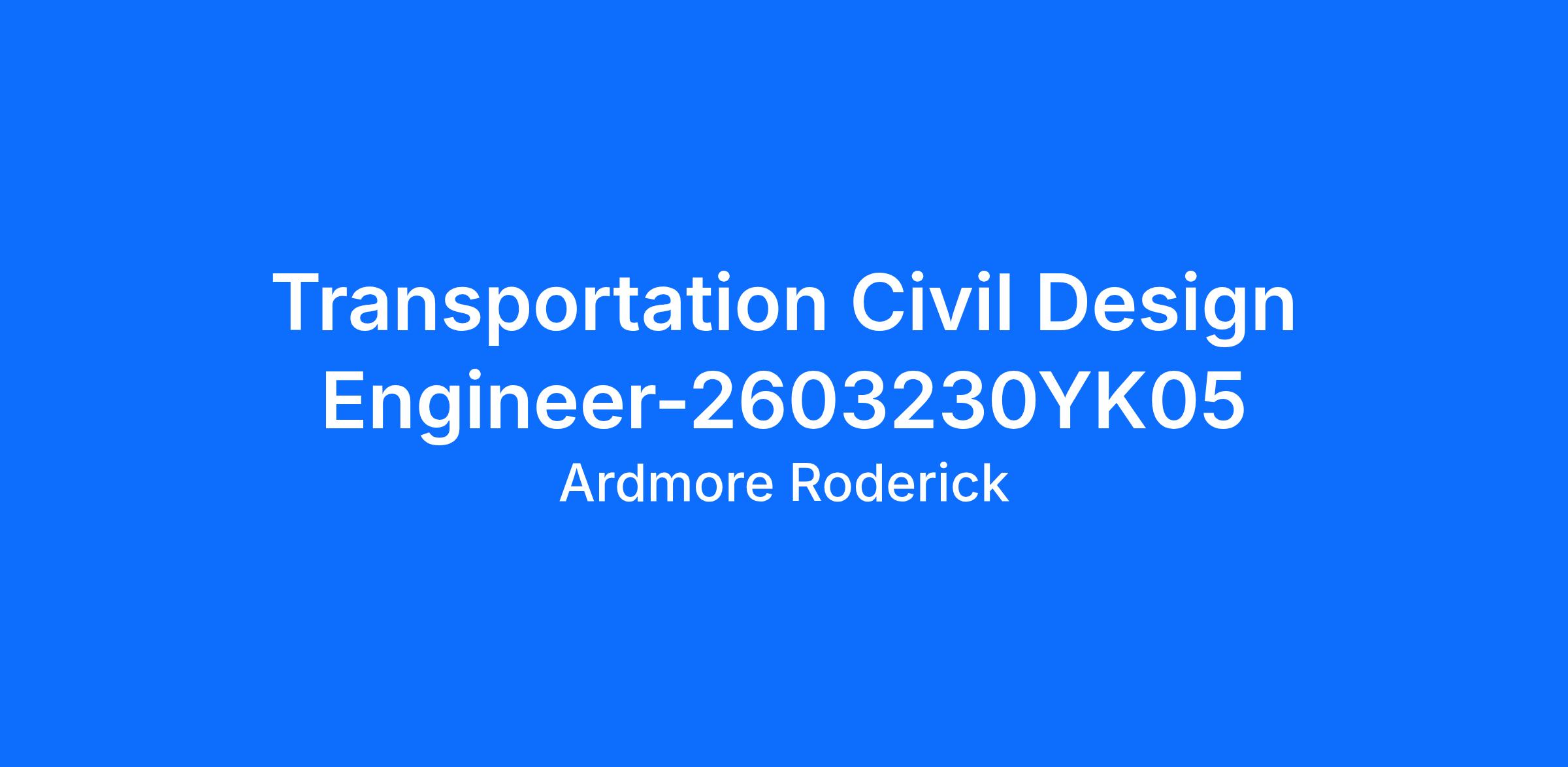 Job Overview We are seeking a Transportation Civil Design Engineer to join our team at Ardmore Roderick. As a Transportation Civil Design Engineer, you join a team of infrastructure solutions experts working to solve our client’s ever evolving project needs. This opportunity will be located in our Orlando, FL office and could have potential to be hybrid depending on the specific client, project and team needs. Key Responsibilities