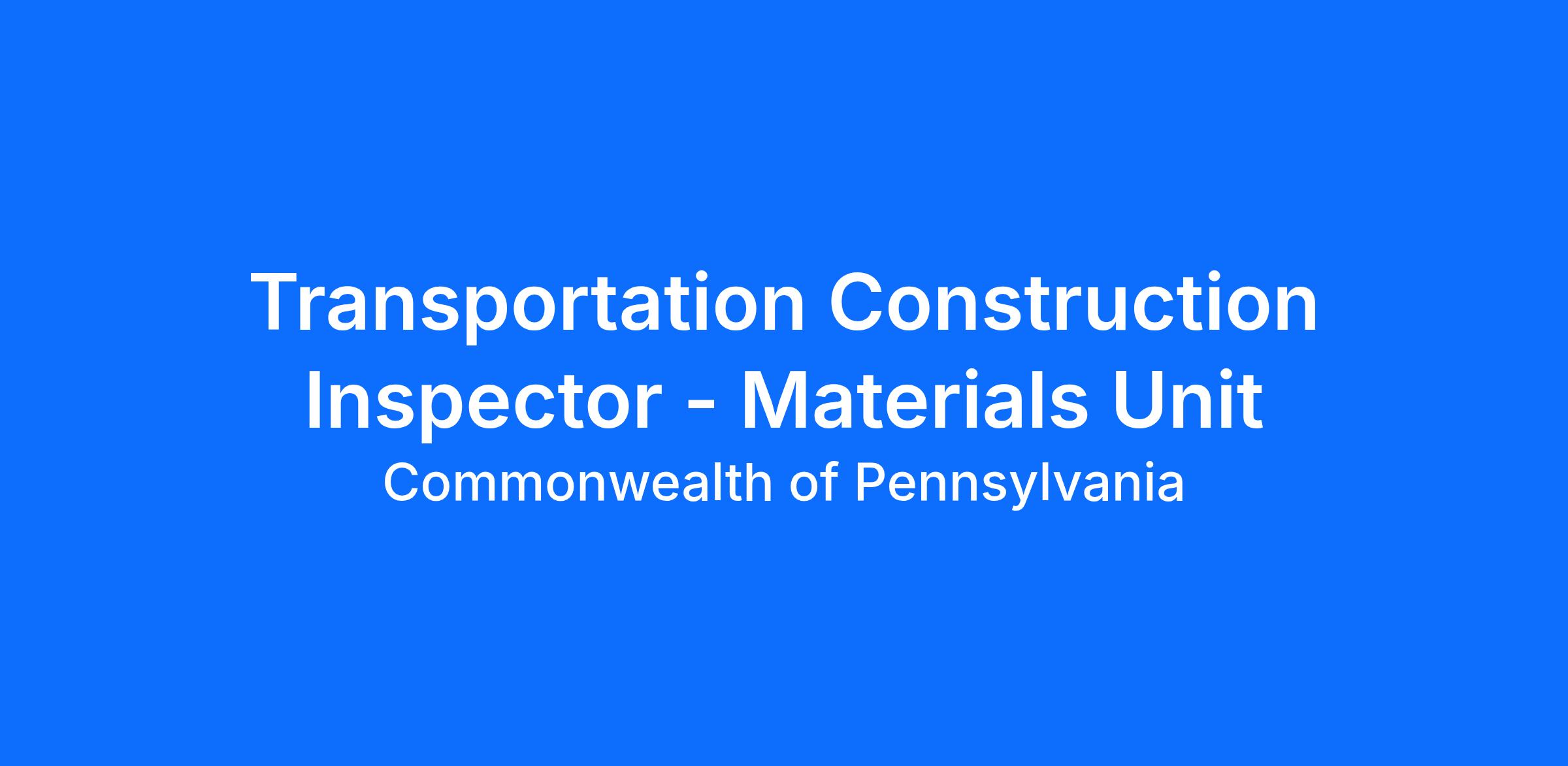 Join the Pennsylvania Department of Transportation, Engineering District 3-0 and be a part of our team as we strive to maintain the quality of materials used in our highways of Pennsylvania. As a Transportation Construction Inspector, you will have the chance to step into a lab and gain hands-on experience with material testing. Your technical skills will be crucial in assessing materials, making an impact on the future of transportation. This is a rewarding opportunity to work with suppliers to provide quality materials to our highway construction projects and see the direct results of your work. Come join us on this journey and make a difference in the transportation industry!