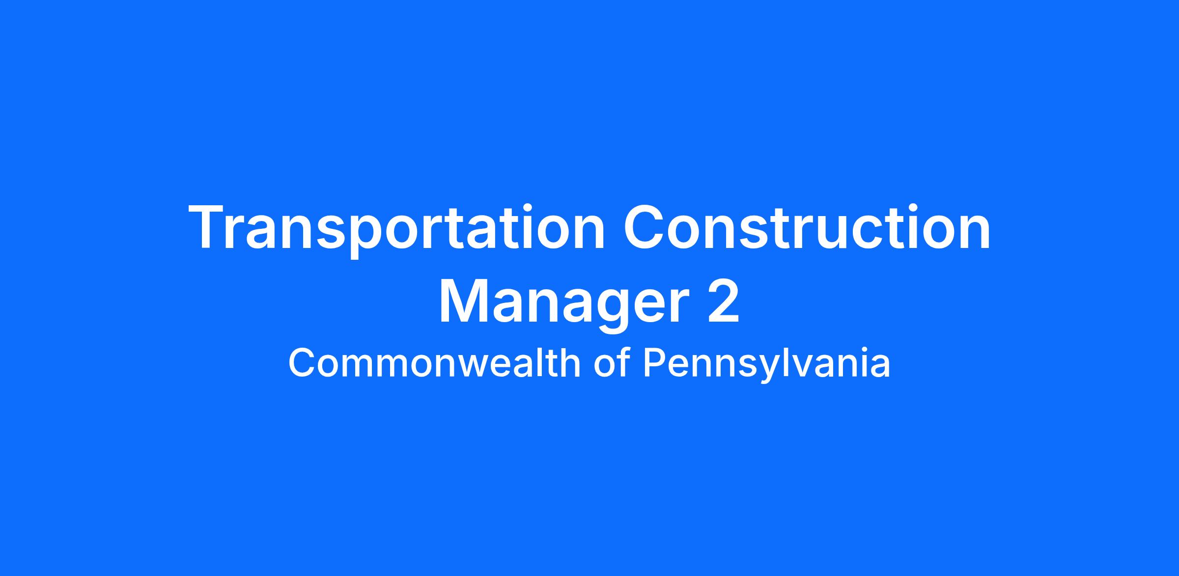 Are you ready to take the driver's seat in Commonwealth infrastructure management? The Pennsylvania Department of Transportation (PennDOT) is excited to welcome a Transportation Construction Manager 2 to direct the inspection of materials and workmanship on construction improvement projects within Engineering District 12. Projects will involve multi-lane roadways and multi-span bridge structures encompassing interchanges and overpasses. Apply today to help us uphold the highest standards for the Commonwealth's transportation network!