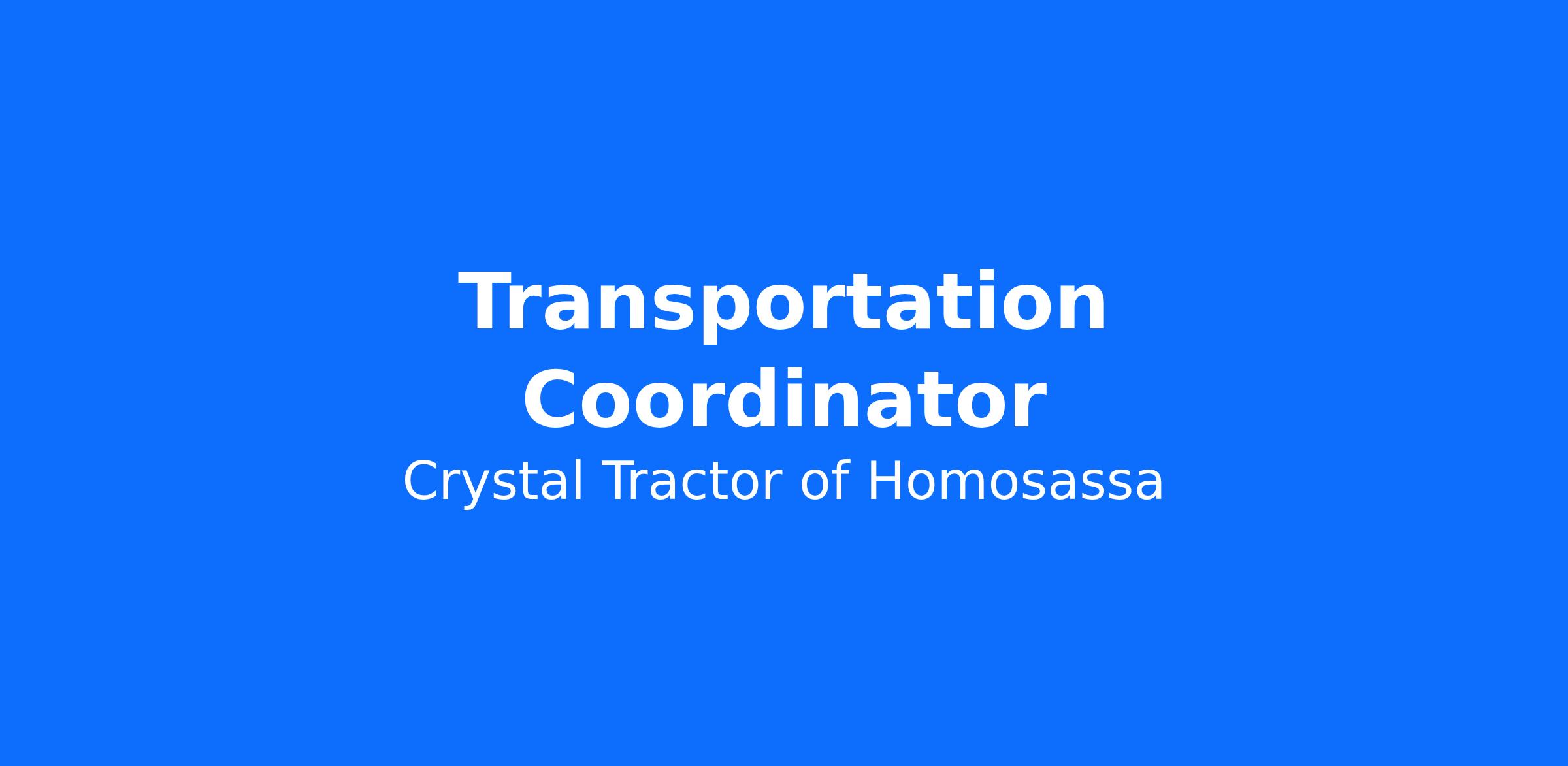 - The Transportation Coordinator is responsible for coordinating & scheduling sales and service pick-up equipment deliveries among 17 locations and growing.