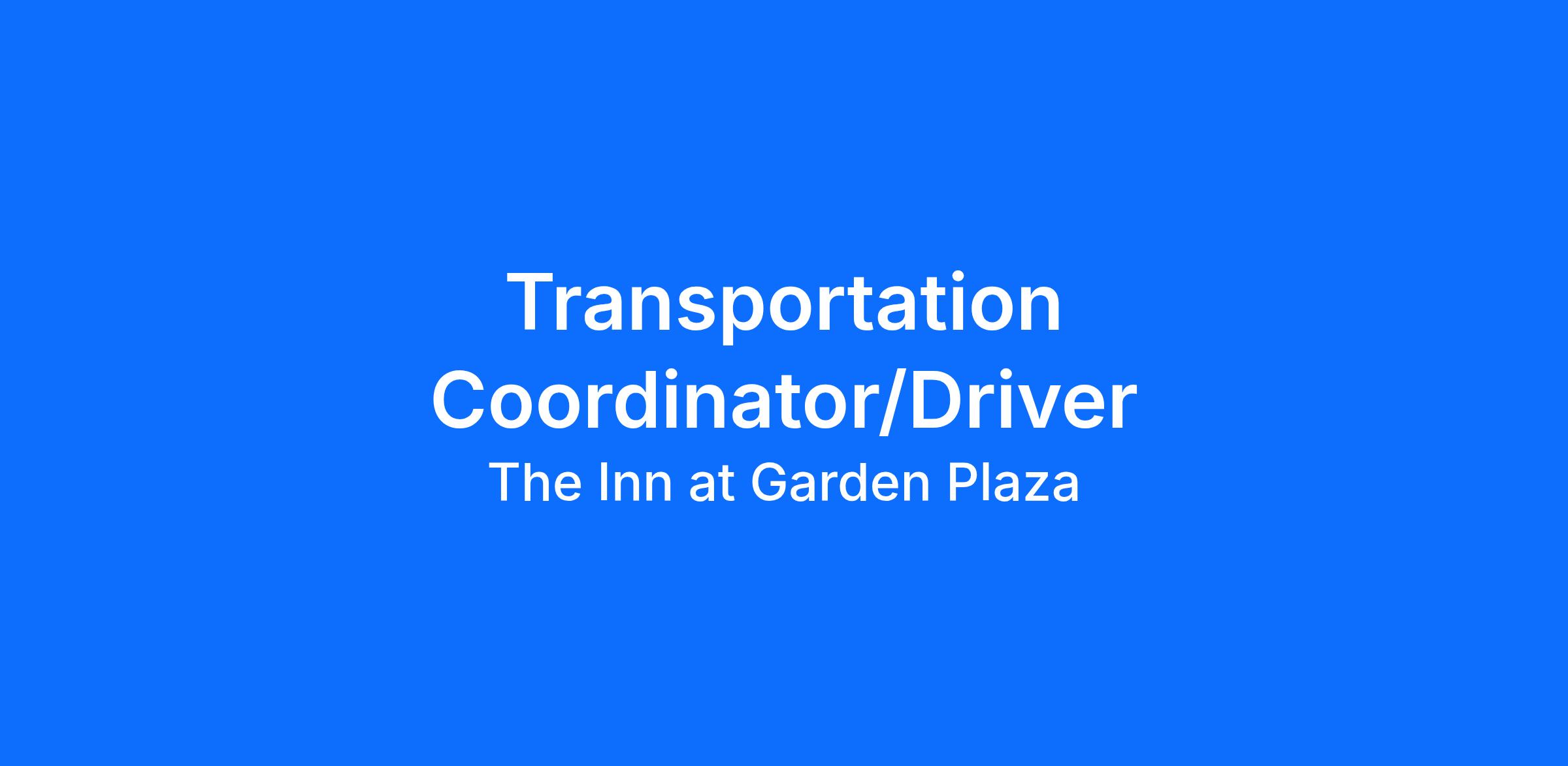Do you have a heart for seniors, and do you work well in a team environment? If so, our independent senior living community--The Inn at Garden Plaza--wants you to join our team! We are looking for a Transportation Driver to take residents to appointments and outings. Starting at $18 per hour depending on experience. We are looking for a PT (15-20 hours per week) and PRN (10-15 hours per week AS NEEDED)