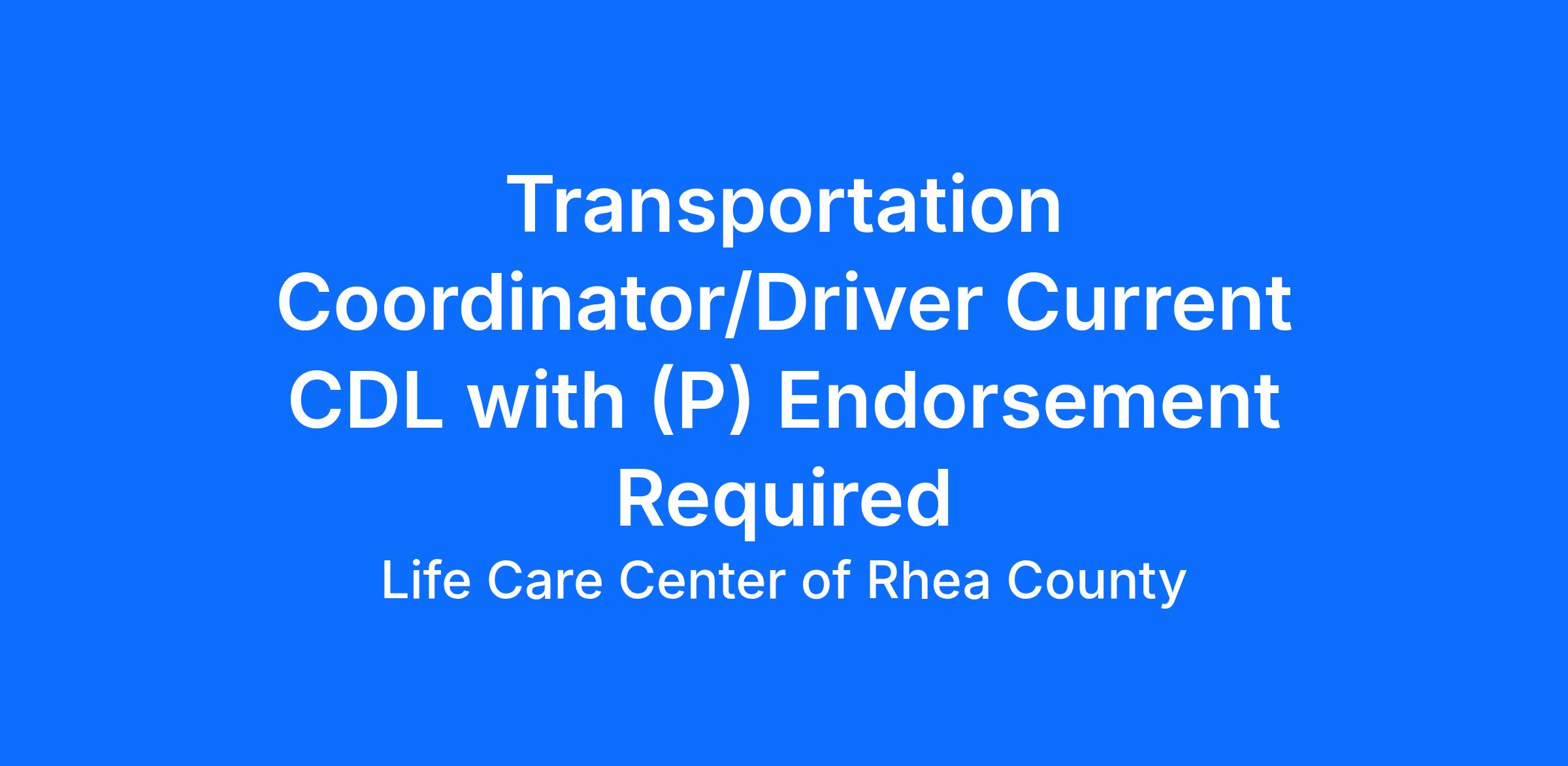 Transportation Coordinator/Driver Current CDL with (P) Endorsement Required