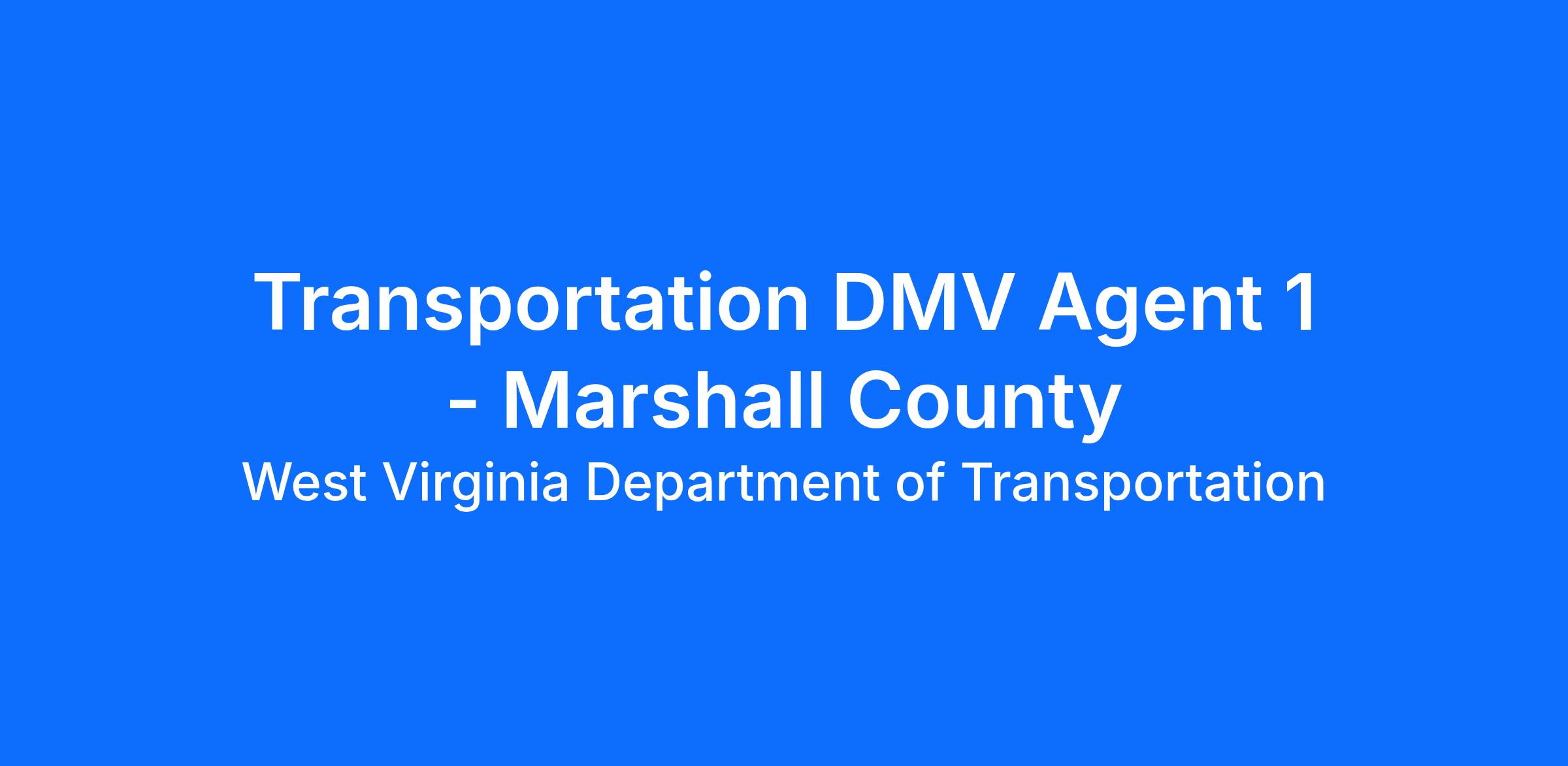 The Transportation DMV Agent 1 will report to the Moundsville Regional Office in Marshall County. Under general supervision, performs full-performance level public contact work involving the processing, recording, and issuance of drivers’ license, vehicle registration, vehicle titles, and related documents in a Division of Motor Vehicles (DMV) regional office. Work involves knowledge, interpretation, and the application of motor vehicle laws, policies, and procedures. Other duties as required.