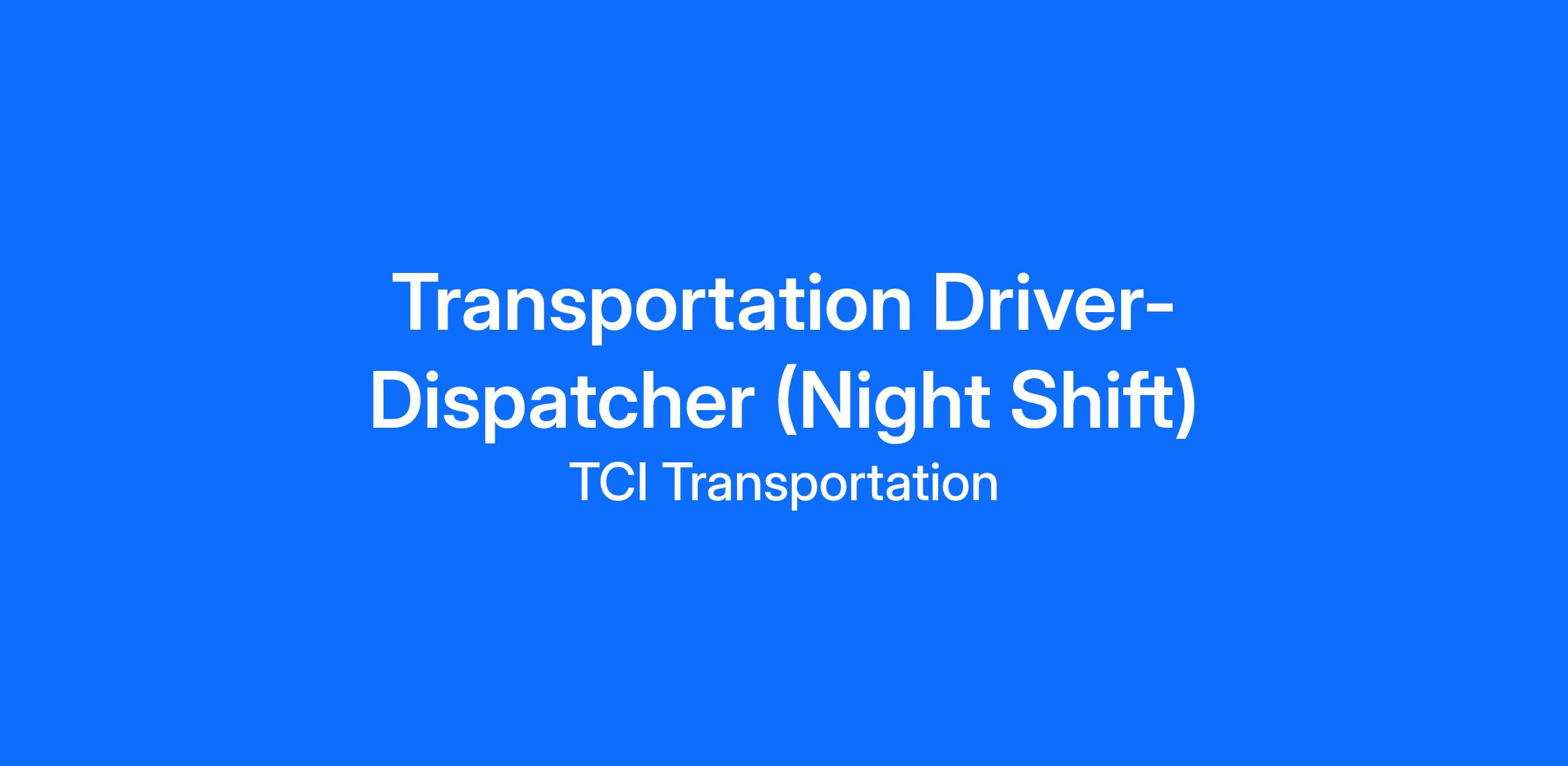 Join the TCI Team as a Driver-Dispatcher – $24/Hour | Overtime after 8 hours