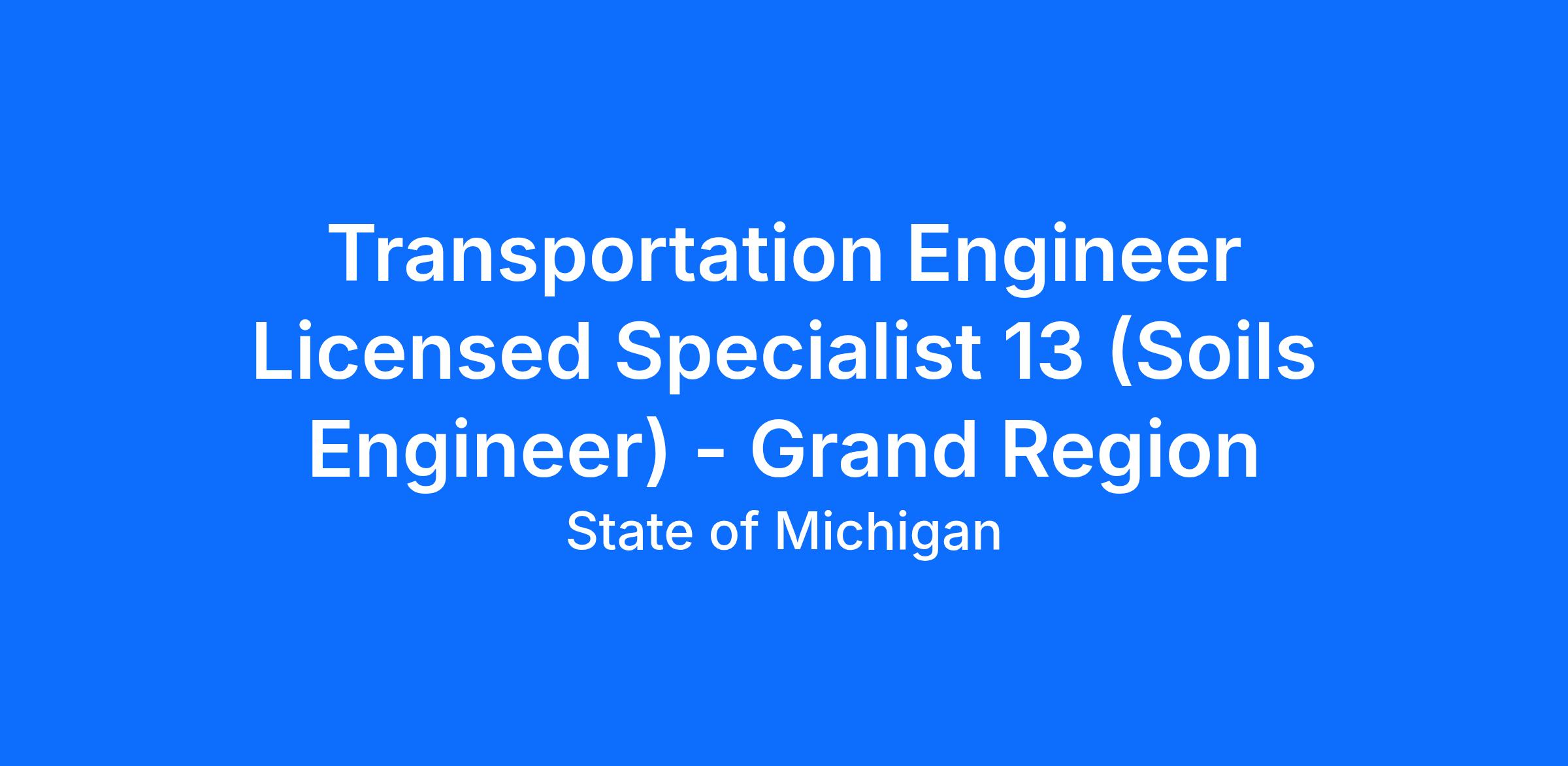 View the classification specification at: https://www.michigan.gov/mdcs/-/media/Project/Websites/mdcs/JOBSPECS/T/TransportationEngineerLicensedSpecialist.pdf