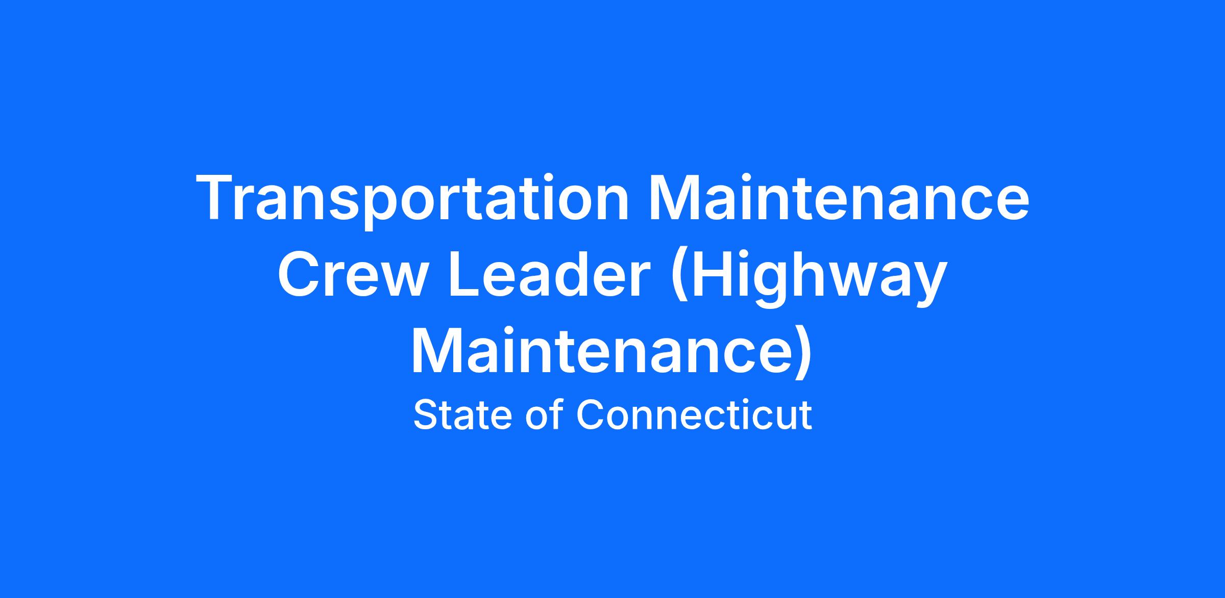 The State of Connecticut Department of Transportation (DOT), invites its experienced agency employees to apply for the position of Transportation Maintenance Crew Leader (Highway Maintenance) located within District 4 Maintenance Garages.