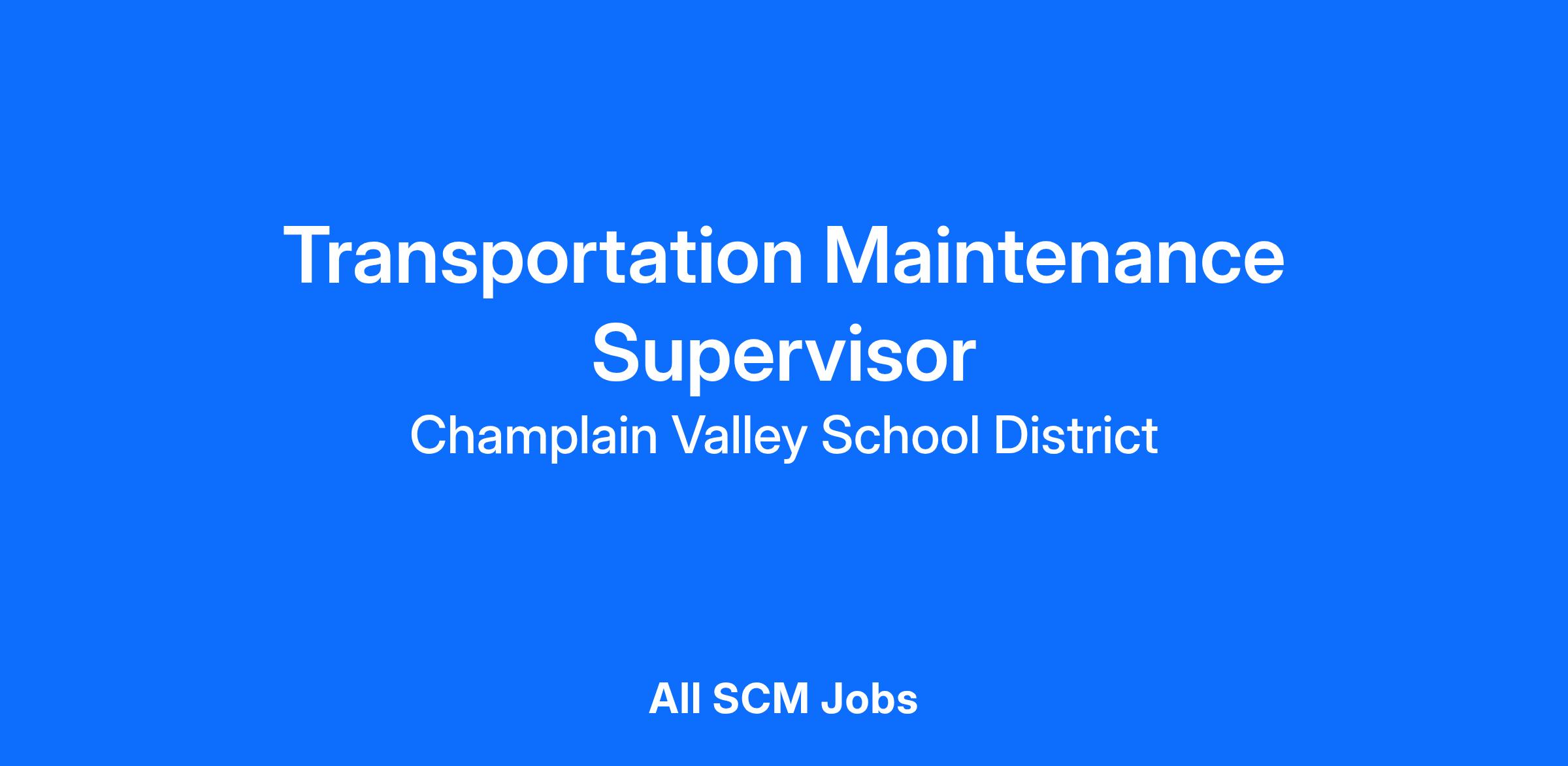 Champlain Valley School District is seeking an experienced and dedicated Transportation Maintenance Supervisor to lead the maintenance and repair of our entire fleet. This is a critical leadership role that ensures the safety, compliance, and readiness of our school buses and support vehicles.