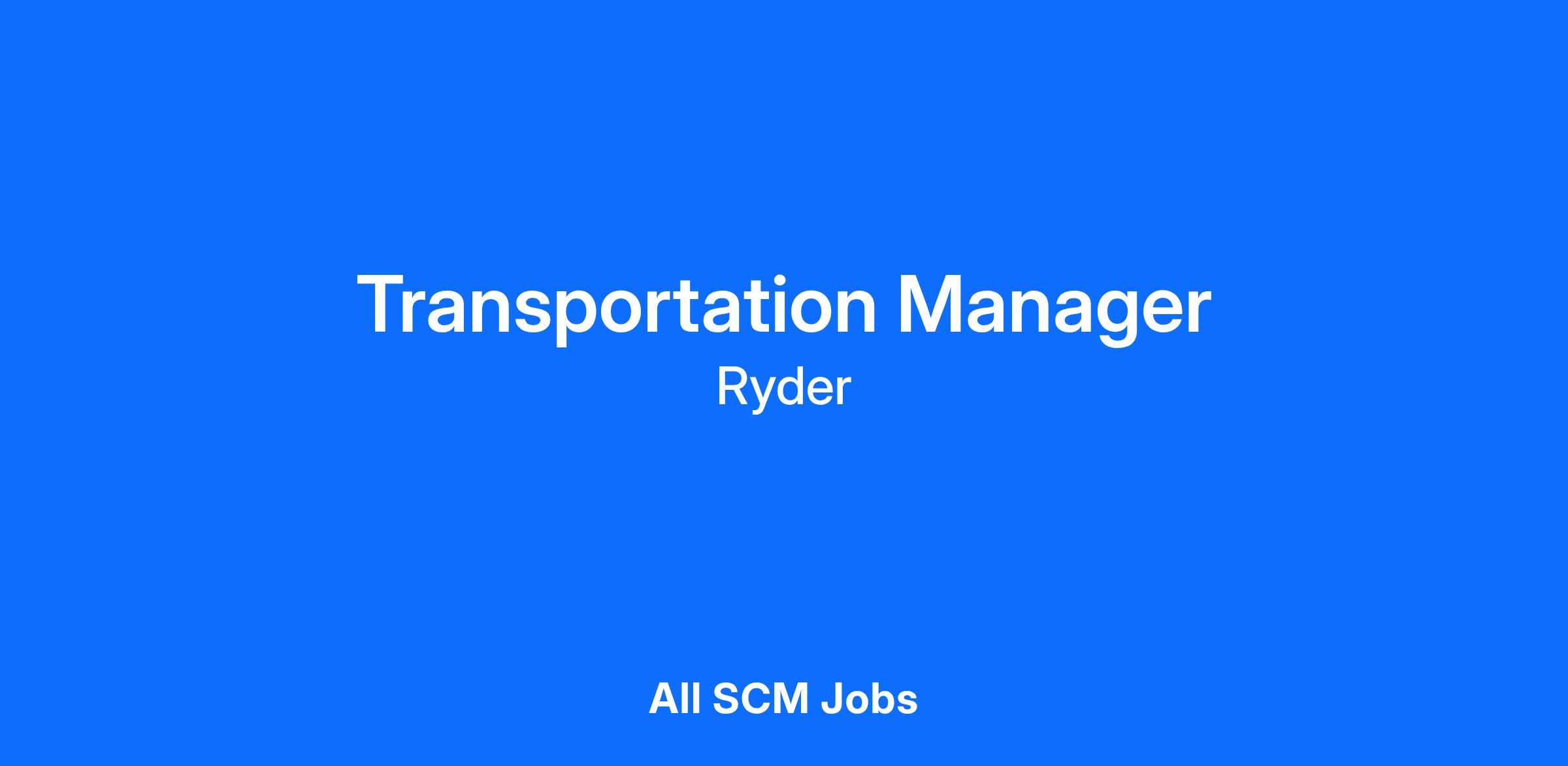 Ryder is proud to be an Equal Opportunity Employer and Drug Free workplace.