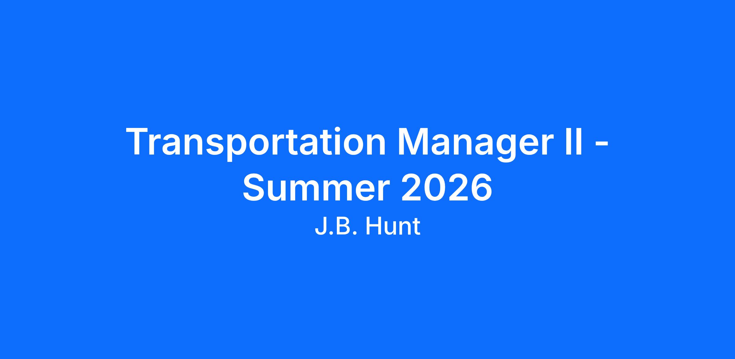 Transportation Manager II - Summer 2026