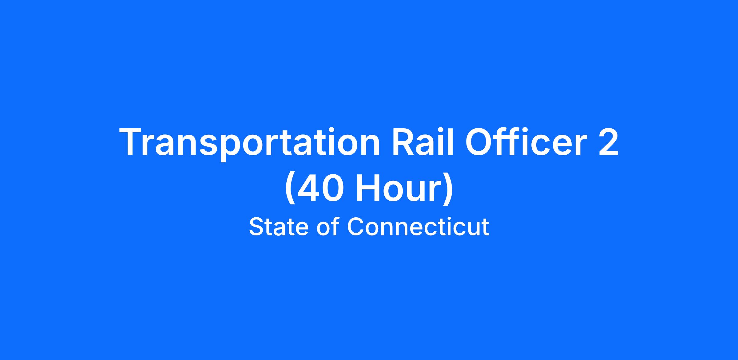 This image shows a career progression pathway with the State of Connecticut: starting with Rail Officer 1, with a focus on Rail Officer 2, ending with Transportation Supervising Rail Officer.