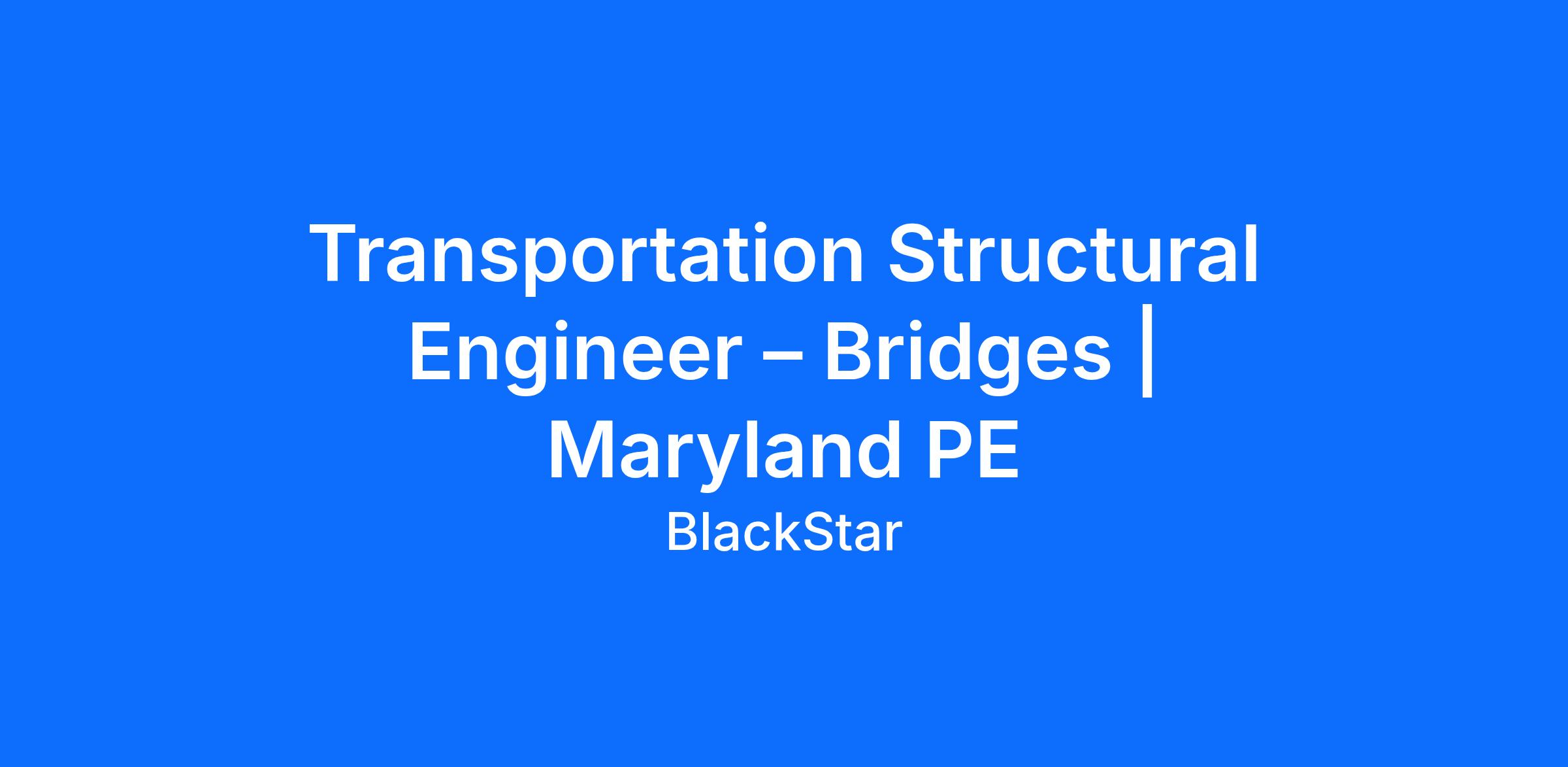 Transportation Structural Engineer – Bridges | Maryland PE Required