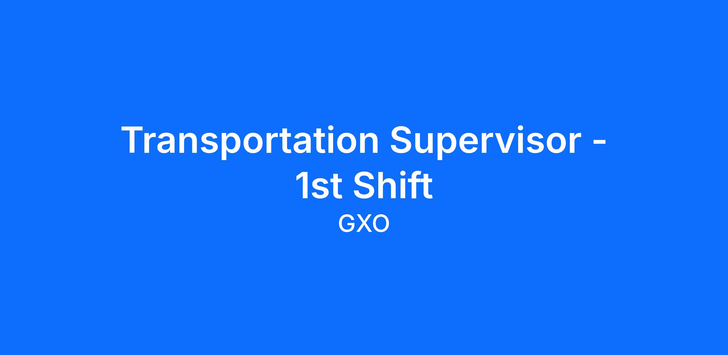 Do you want to take your career to the next level with a fast-growing global company? Join GXO Logistics. As the Transportation Supervisor, you will coordinate and handle a variety of transportation activities, as well as supervise day-to-day transportation operations and strive to meet or exceed customer expectations. Become a part of our dynamic team and we'll help you develop your career to a level that will exceed your expectations.