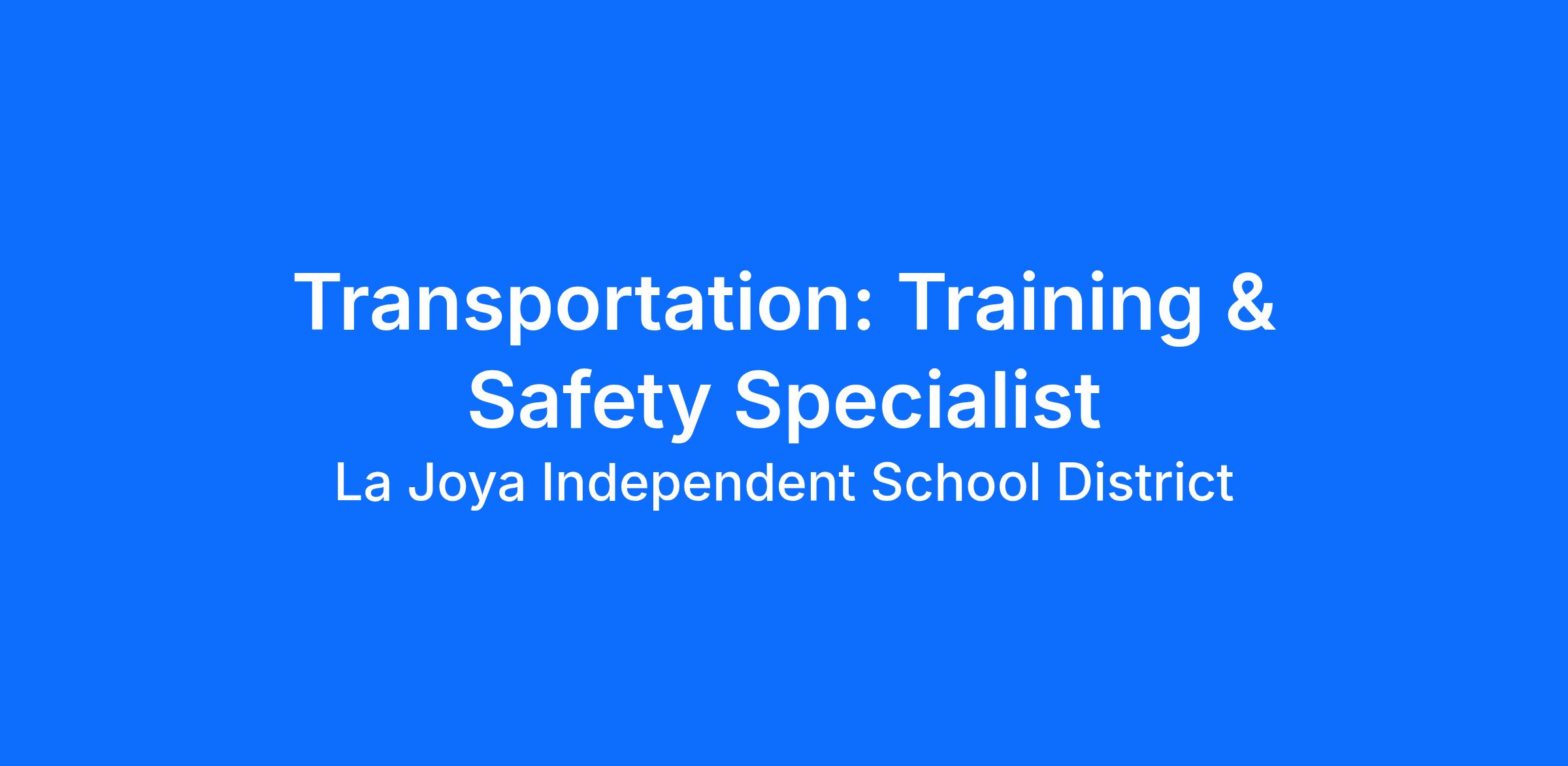 Transportation – Training/Safety Specialist