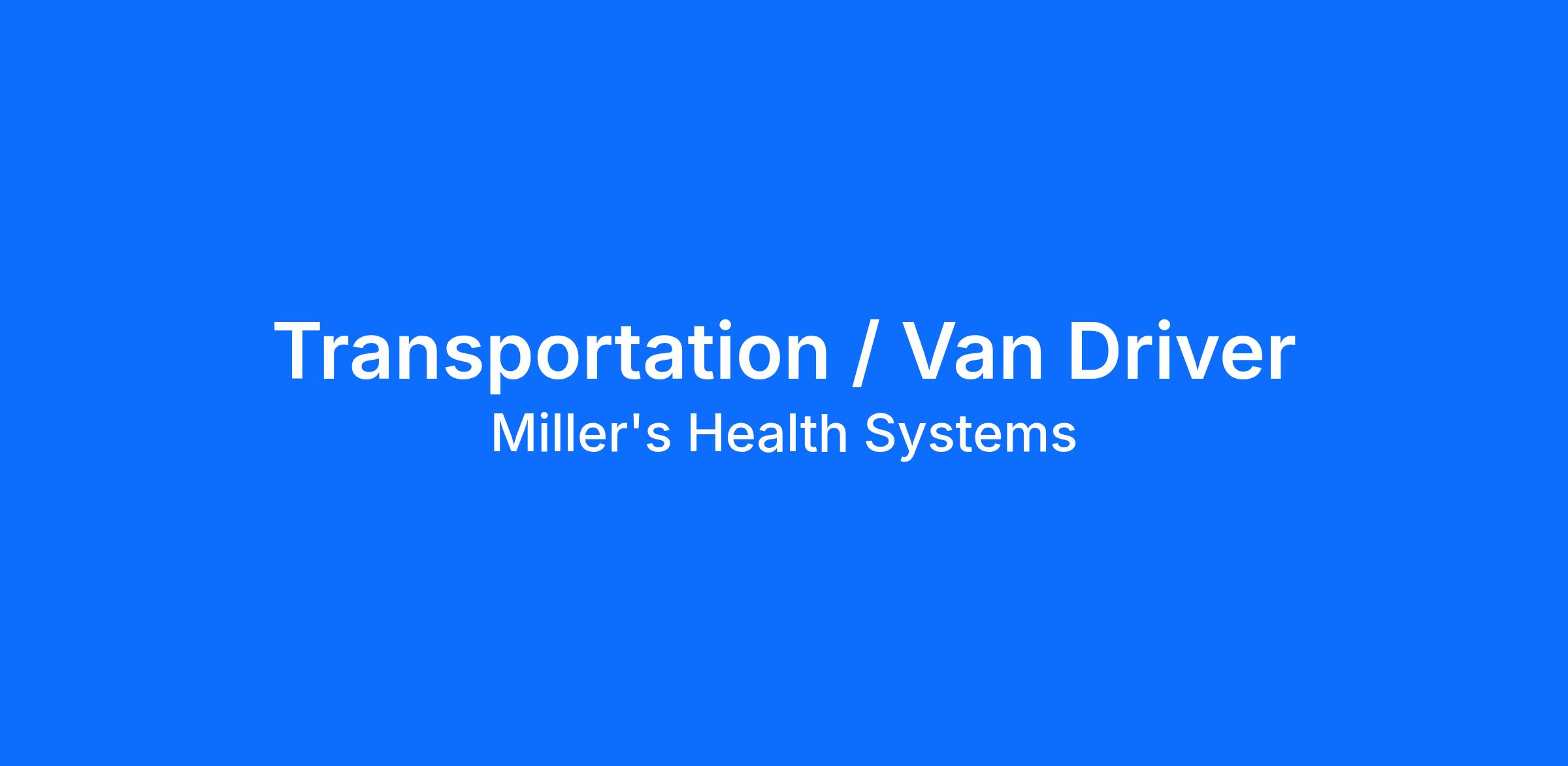 Are you friendly and enjoy building relationships with new people? You are comfortable interacting with a variety of personalities? Do you have a clean driving record? Consider becoming a Van Driver for Miller's.