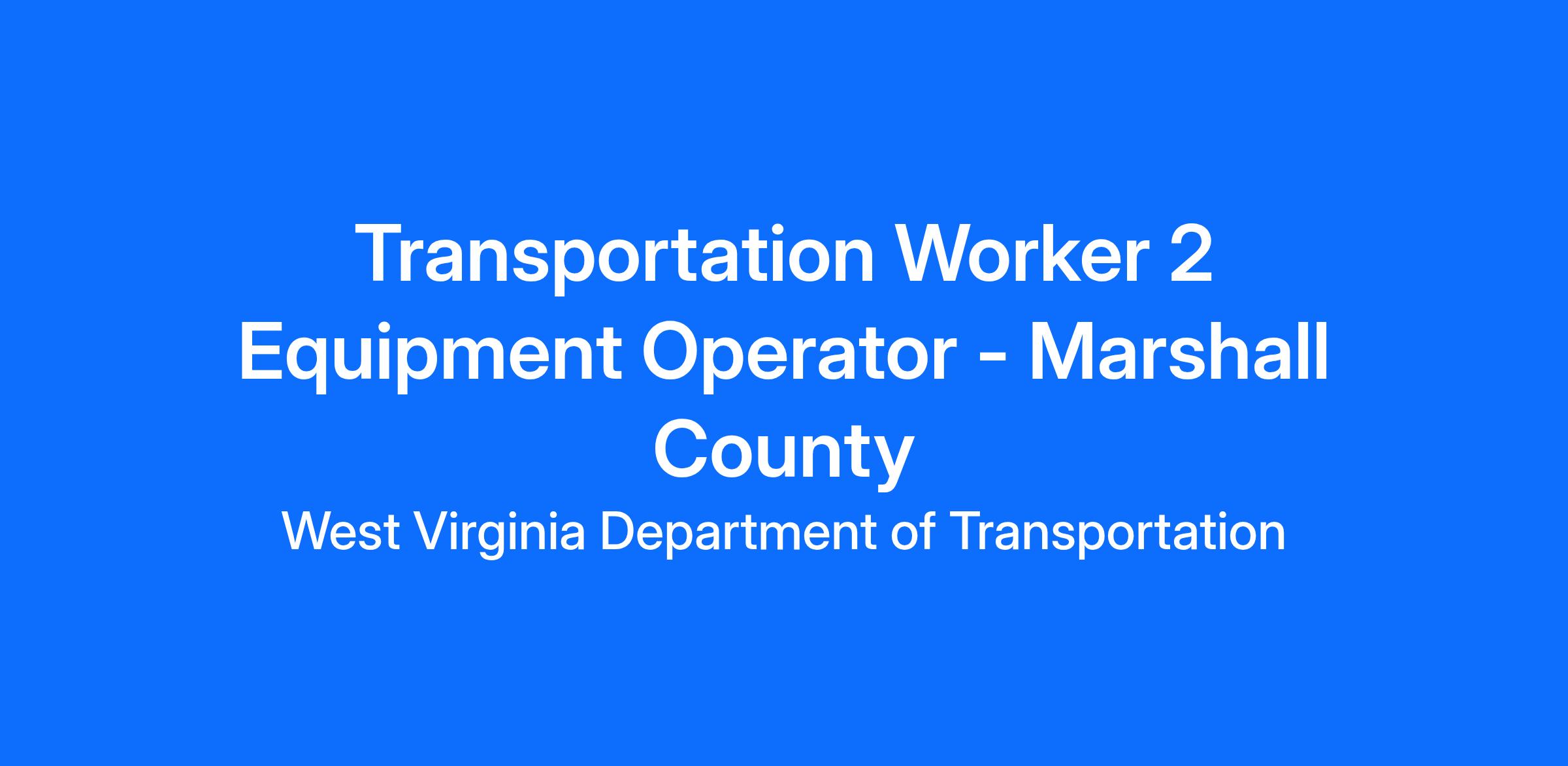 The Transportation Worker 2 Equipment Operator will report to the Marshall County Headquarters. Under general supervision, performs full-performance level skilled work in the construction and maintenance of highways. Duties include: operating motorized highway maintenance equipment such as skid steer, utility tractor, aerial bucket truck, front-end loader, tandem-axle truck, and snowplow. Making major repairs to highways, culverts, and bridge structures. Making minor mechanical repairs in the field such as changing tires, blades, or filters. Responsible for equipment maintenance including but not limited to cleaning and lubricating equipment and checking fluid levels. Flagging, erecting traffic control signs and barricades on construction and maintenance projects, shoveling materials, cleaning culverts, mowing, and brush cutting. May be exposed to hazardous working conditions and inclement weather. Performs other related duties as required.