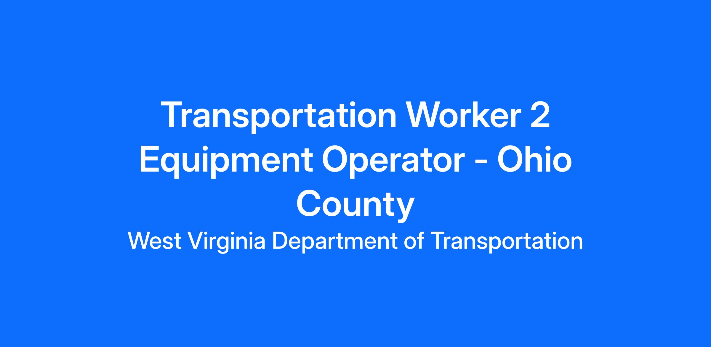 The Transportation Worker 2 Equipment Operator will report to the Ohio County Maintenance Headquarters. Under general supervision, performs full-performance level skilled work in the construction and maintenance of highways. Duties include: operating motorized highway maintenance equipment such as skid steer, utility tractor, aerial bucket truck, front-end loader, tandem-axle truck, and snowplow. Making major repairs to highways, culverts, and bridge structures. Making minor mechanical repairs in the field such as changing tires, blades, or filters. Responsible for equipment maintenance including but not limited to cleaning and lubricating equipment and checking fluid levels. Flagging, erecting traffic control signs and barricades on construction and maintenance projects, shoveling materials, cleaning culverts, mowing, and brush cutting. May be exposed to hazardous working conditions and inclement weather. Performs other related duties as required.