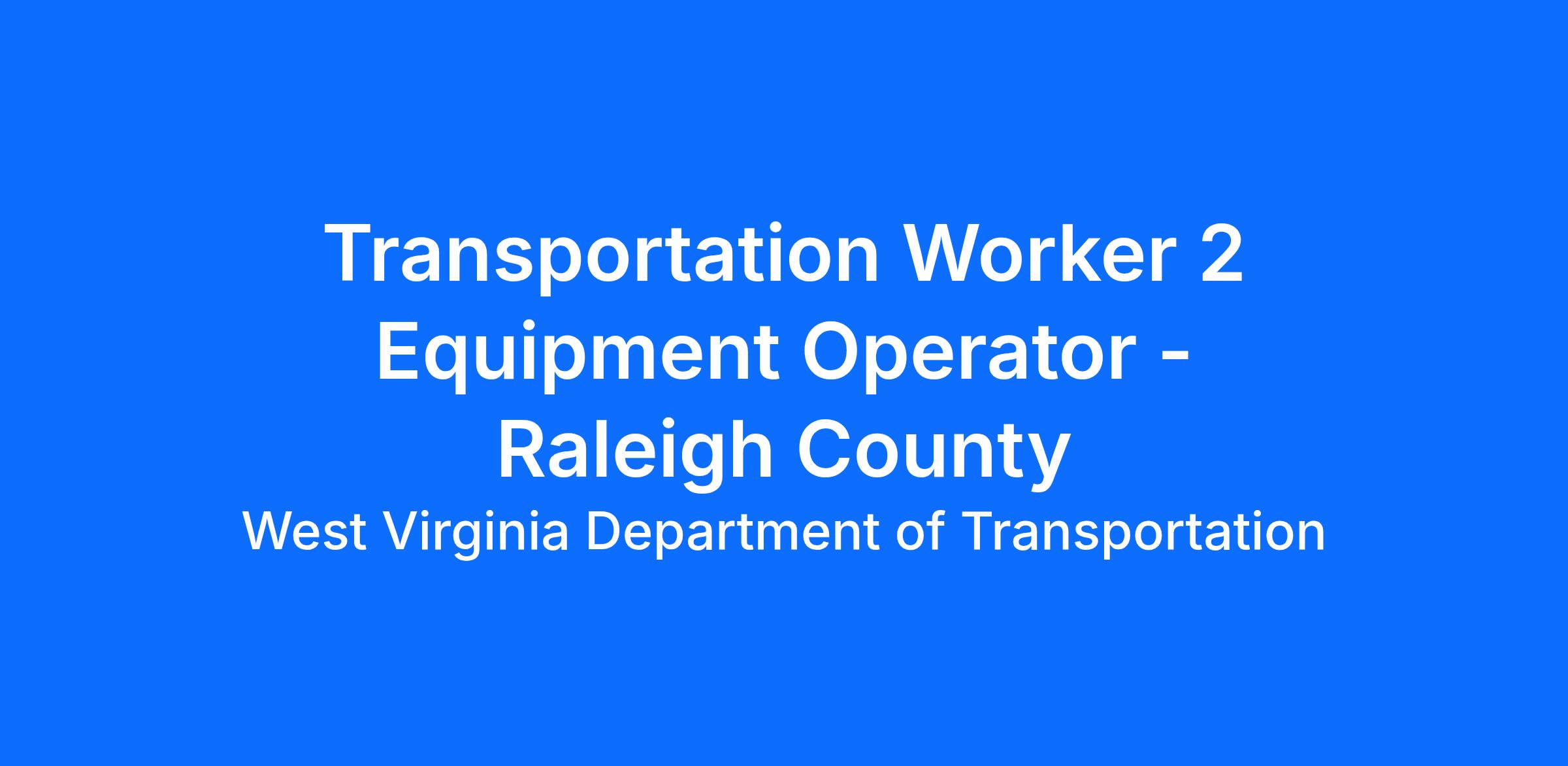 The Transportation Worker 2 Equipment Operator will report to the Coalfields Expressway WV121 Organization in Raleigh County. Under general supervision, the employee performs full-performance level skilled work in the construction and maintenance of highways. Duties include: operating motorized highway maintenance equipment such as skid steer, utility tractor, aerial bucket truck, front-end loader, tandem-axle truck, and snowplow. Making major repairs to highways, culverts, and bridge structures. Making minor mechanical repairs in the field such as changing tires, blades, or filters. Responsible for equipment maintenance including but not limited to cleaning and lubricating equipment and checking fluid levels. Flagging, erecting traffic control signs and barricades on construction and maintenance projects, shoveling materials, cleaning culverts, mowing, and brush cutting. May be exposed to hazardous working conditions and inclement weather. Performs other related duties as required.