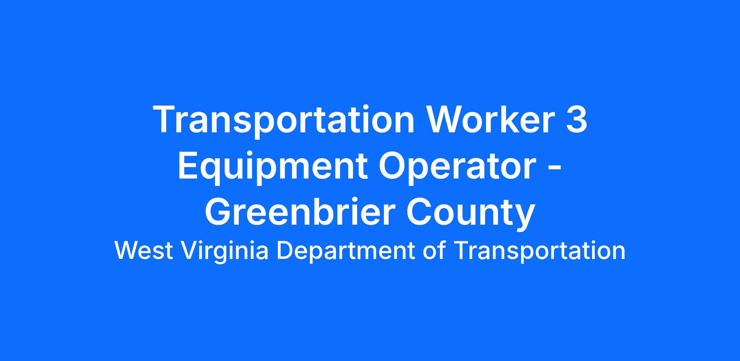 The Transportation Worker 3 Equipment Operator will report to the District 9 Heavy Maintenance Paving Crew located in the District Heavy Maintenance Headquarters in Greenbrier County. Under general supervision, the incumbent performs full-performance level skilled work in the construction and maintenance of highways. Operates motorized highway maintenance equipment such as skid steer, utility tractor, aerial bucket truck, front-end loader, tandem-axle truck, and snowplow. Makes major repairs to highways, culverts, and bridge structures. Makes minor mechanical repairs in the field, such as changing tires, blades, or filters. Responsible for maintaining equipment maintenance including but not limited to cleaning and lubricating equipment and checking fluid levels. May be exposed to hazardous working conditions and inclement weather. Performs related work as required, including flagging, erecting traffic control signs and barricades on construction and maintenance projects, shoveling materials, cleaning culverts, mowing, and brush cutting. Performs other related duties as required.